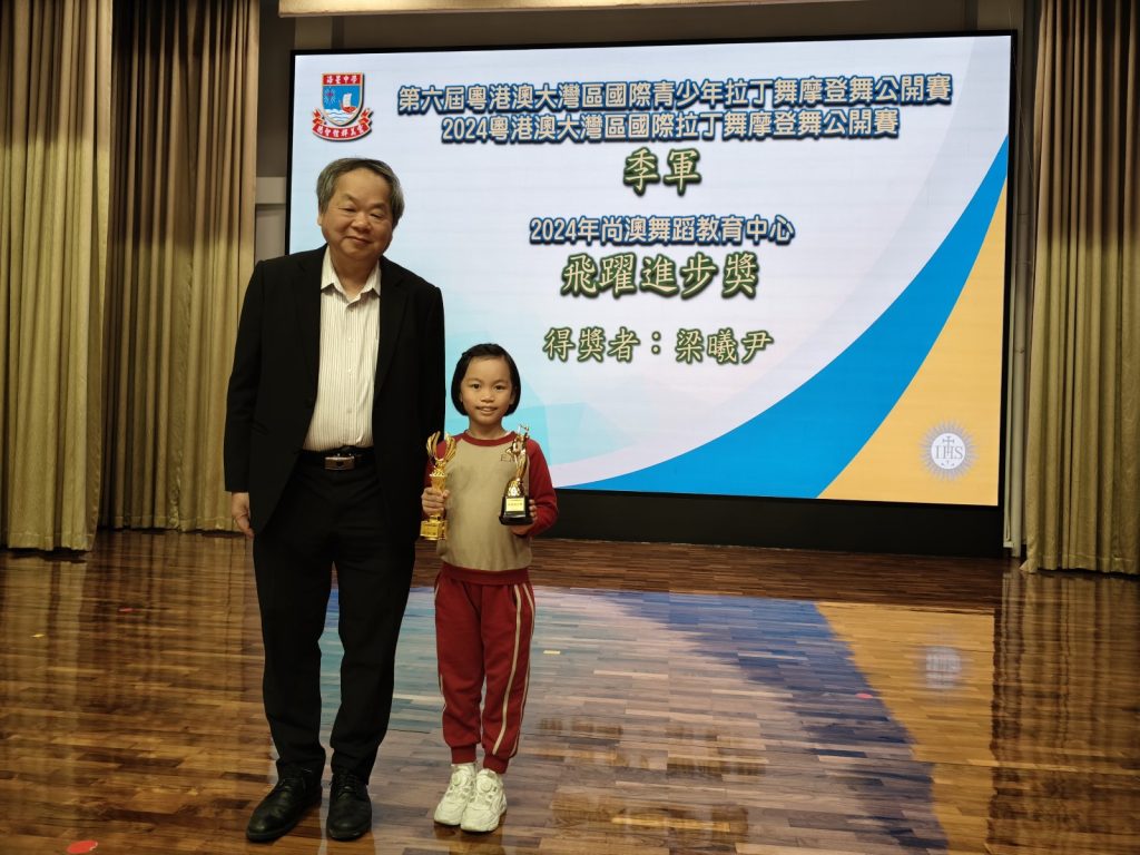 「第六屆粵港澳大灣區國際青少年拉丁舞摩登舞公開賽」暨「2024粤港澳大灣區國際拉丁舞摩登舞公開賽」,本校幼高愛班梁曦尹同學獲得季軍。