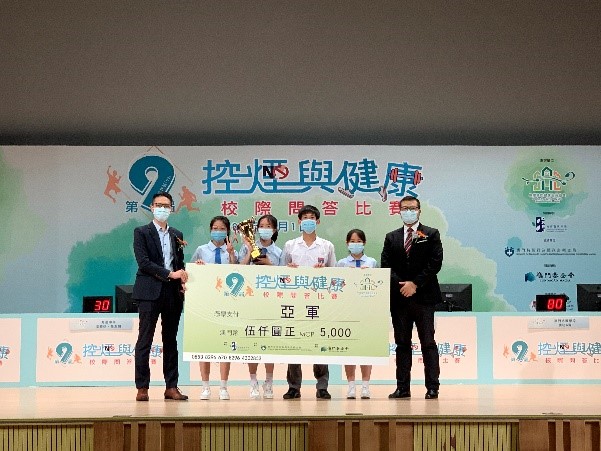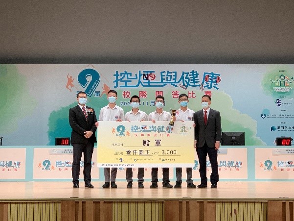 由無煙澳門健康生活協會主辦、教育暨青年局協辦、衛生局及澳門基金會支持。本屆比賽全澳十九所學校合共五十六支隊伍參與。本校黎詩棋老師、江蓉老師帶領4隊共16位同學參加比賽,勇奪亞軍、季軍、殿軍。恭喜獲獎同學!
