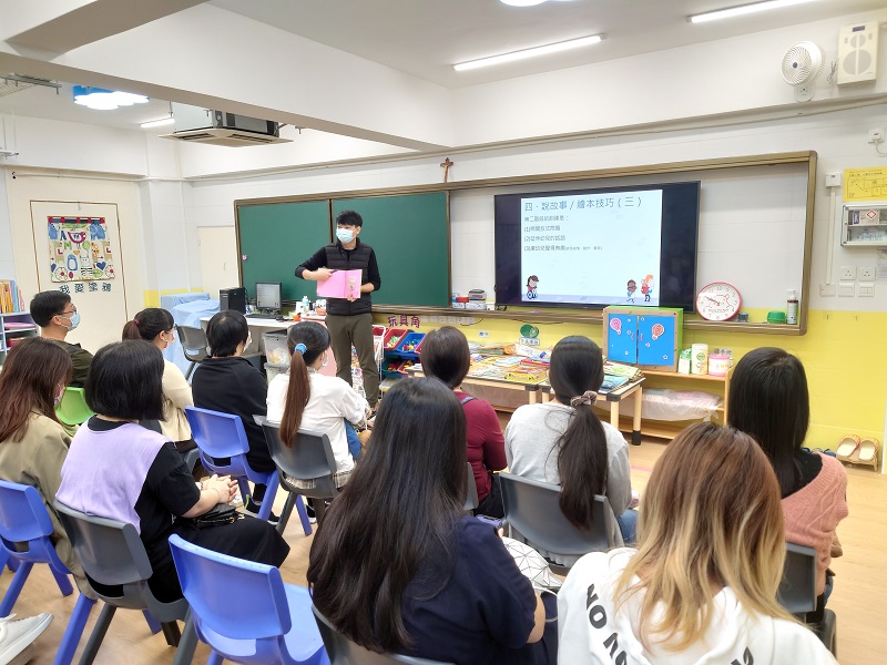 本校與團體合辦<故事爸媽工作坊2021>,內容包括有專題講解、家長說故事技巧指導、老師示範課等,有40名家長與小朋友參加。工作坊為家長講解說故事中的方法與技巧,指出肢體語言表達方式,適當的聲調和語氣,與聽眾的互動的要素十分重要,可令故事更加的生動及有趣,同時可加入媒體輔助物如兒歌、動畫、聲音檔、網上資源等,而實體輔助物像是角色扮演用具、布偶或手指偶、樂器等用具作輔助,以使小朋友更能投入故事情節中,鞏固對故事的記憶。
