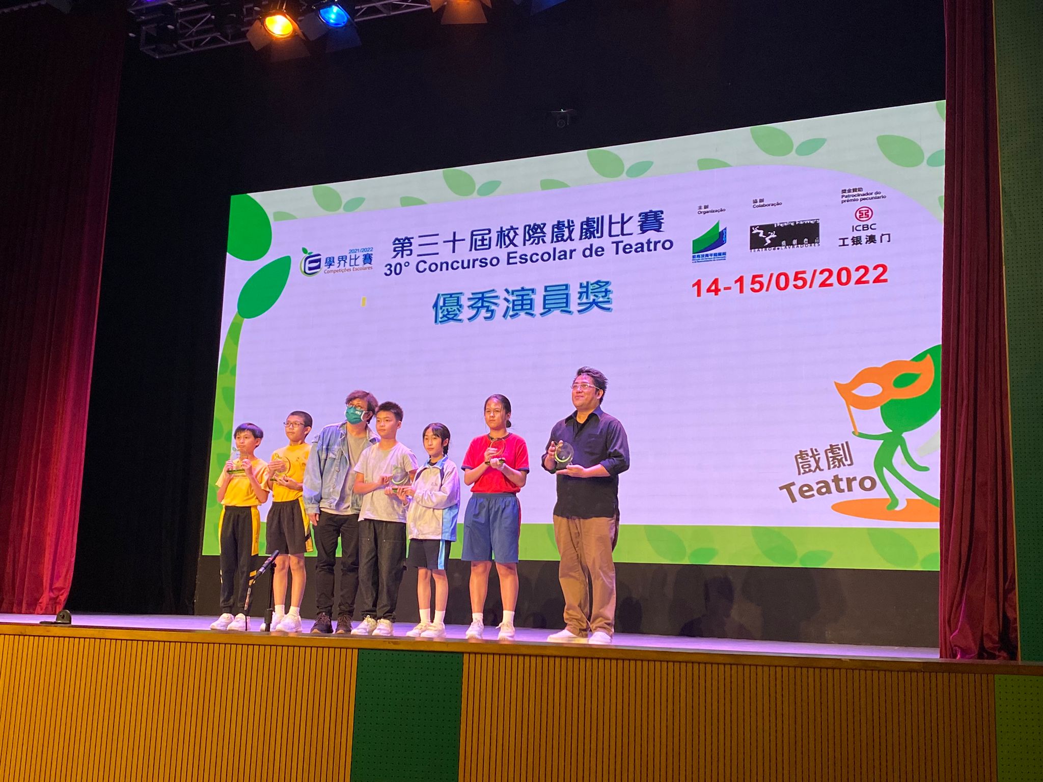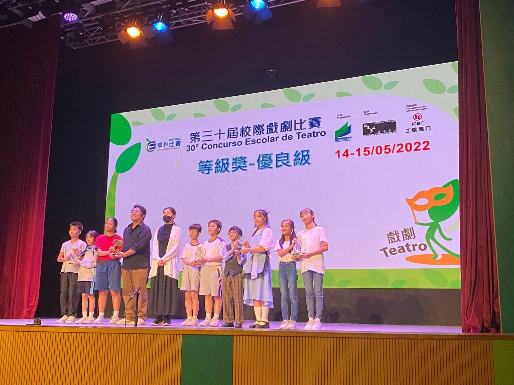 為推動戲劇教育,提高學生的文化藝術素養,小學戲劇組於5月15日參加由教育及青年發展局主辦之「第三十屆校際戲劇比賽」,並獲得等級獎-優良級,其中張曉陽同學更憑劇中「阿爸」一角獲得優秀演員獎,恭喜各位獲獎同學!
