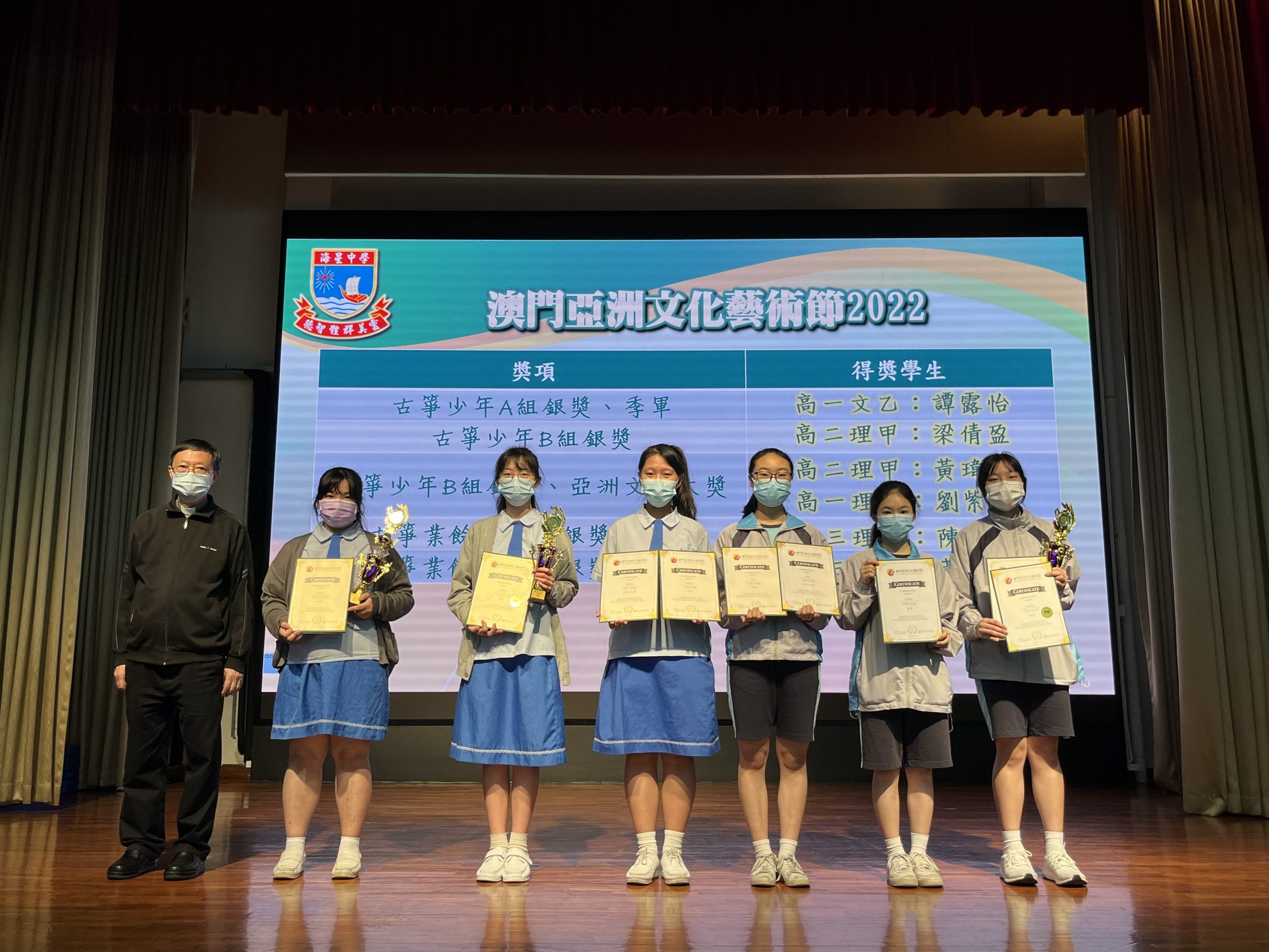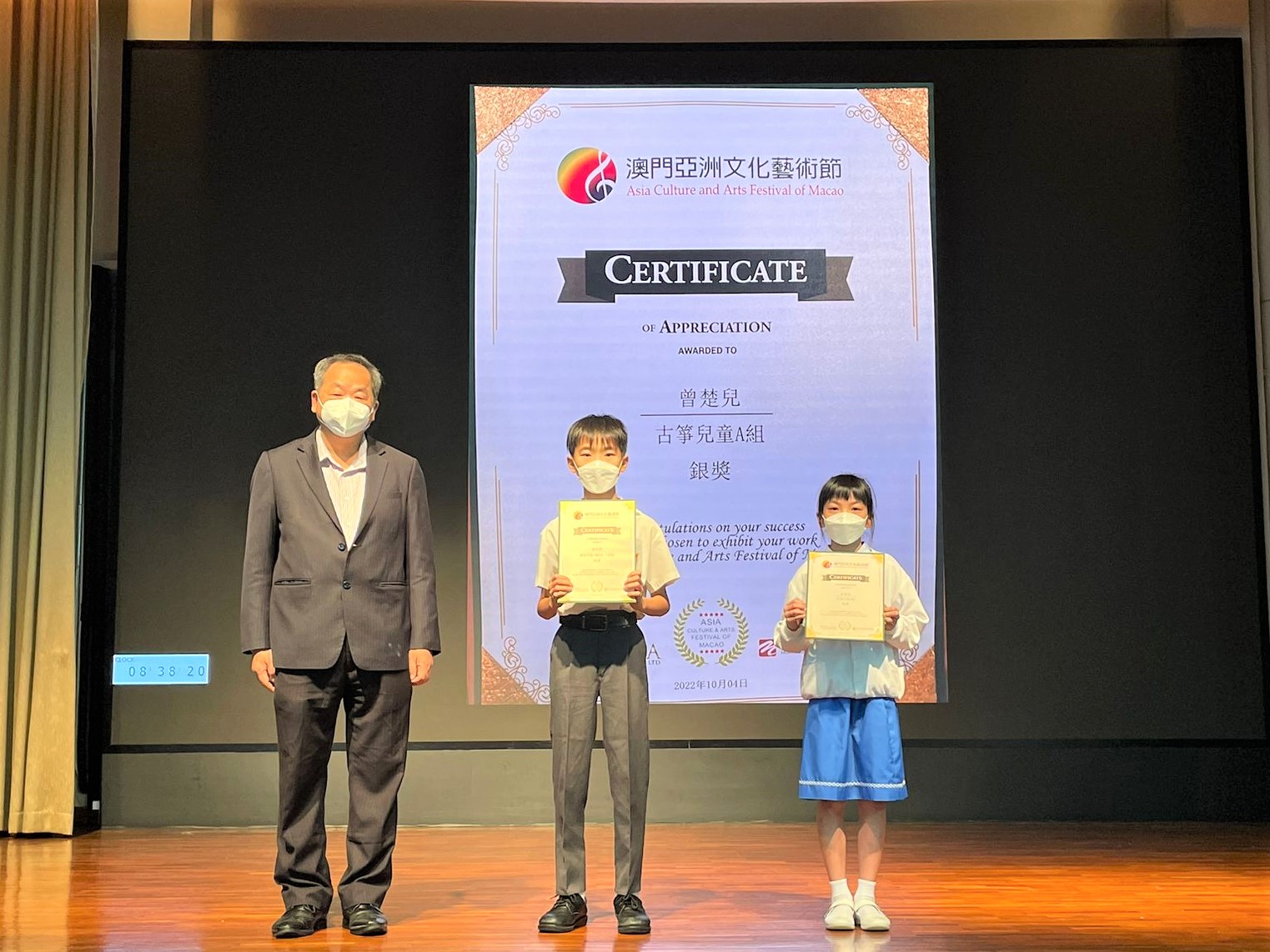 「澳門亞洲文化藝術節2022」是由亞太教育文化交流協會和澳門鋼琴調音師協會聯合主辦,旨在拓展和深化青少年在文化藝術交流、文化產業培育,以及音樂藝術教育等方面的合作,在粵港澳三地共同舉辦一系列活動。其中我校學生在鋼琴及古箏項目中獲得多個獎項,表現值得嘉許。