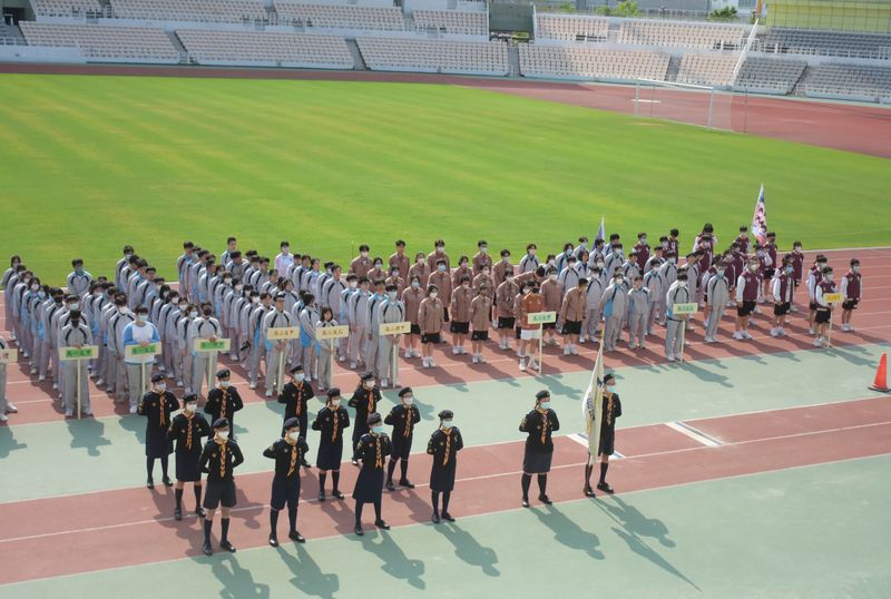 當天早上九時三十分,中、小學部運動員代表有序入場,健兒們邁着矯健的步伐,展現昂揚的鬥志。其後童軍代表舉行升旗禮,國歌亦隨之響起,眾人頌唱國歌,莊嚴肅穆。然後,全場頌唱校歌及海星頌,歌聲響徹整個運動場,讓人熱淚盈眶。接著由黃彪校長致開幕辭。黃校長致辭表示,首先感謝為本屆運動會付出艱辛努力的所有工作人員,希望大家懷著感恩的心,圓滿完成三天賽事。亦表示學校一直十分關注師生的身體健康,透過舉辦各類型的體育活動,促進全體師生養成良好的體育鍛煉習慣。最後由高三的運動員代表宣誓,吹響了運動會的號角。