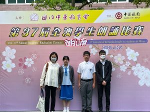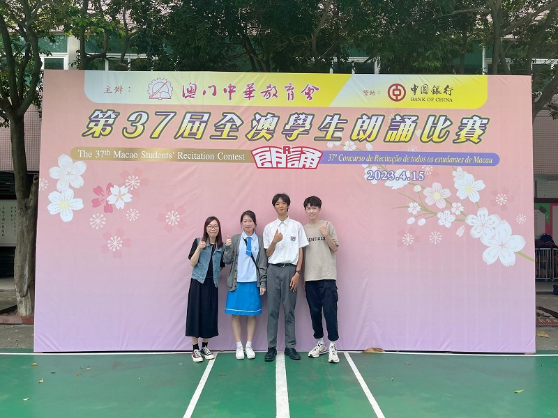 由中華教育會主辦的「第37屆全澳學生朗誦比賽」日前圓滿結束,參與比賽共有七十五所全澳各大學校,約一千一百多名學生,競爭激烈。其中本校初中及高中同學在英語獨誦部份取得不錯成績,恭賀獲獎同學及指導老師!