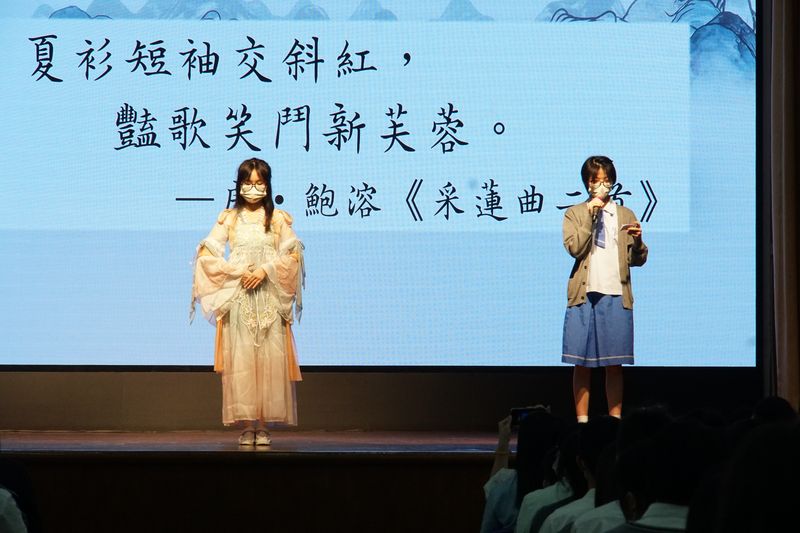 當天,不少學生因應主題精心打扮,大匯演由黃彪校長致辭揭開序幕。黃校長表示:「澳門是一個中西文化匯聚的小城,在接受新文化的同時,我們也應該把舊文化中的優秀部分保留下來,傳承開去。」接著,各級同學透過不同的文藝表演展示了中華文化的多元面貌。而這次活動的高潮,莫過於各班同學代表穿著不同朝代的漢服,以不同的方式介紹其特色和文化內涵,讓同學們獲得了寶貴的課外學習經驗。
