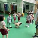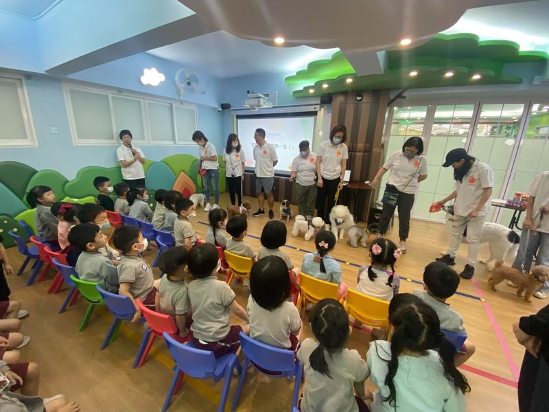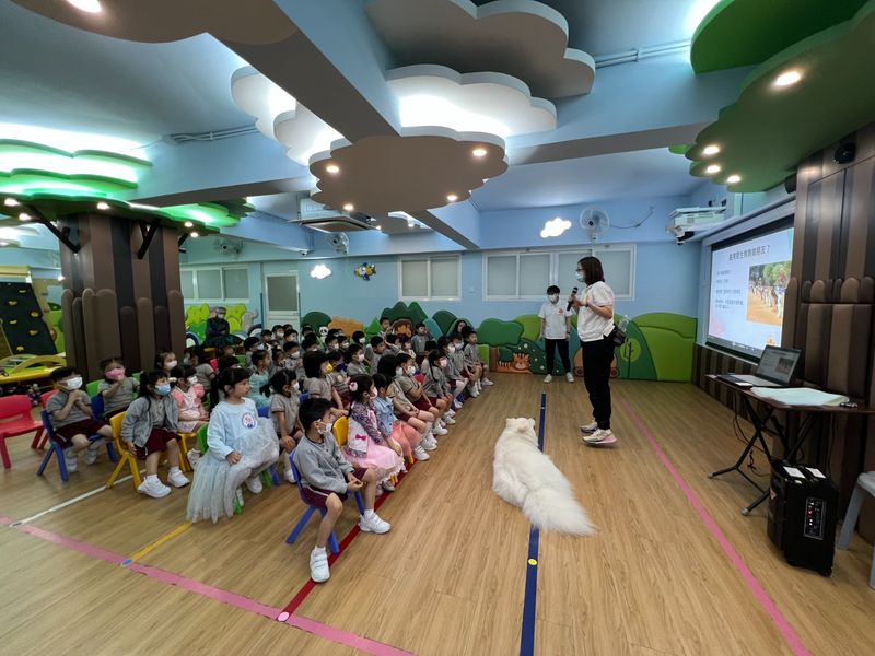 小朋友透過訓練專員的講解,初步了解日常飼養狗隻的注意事項,如:起居飲食、日常護理等;並教導小朋友如何以正確的方式親近狗隻。在活動的過程中,小朋友不但非常專心聆聽,更會積極回應訓練員的問題。