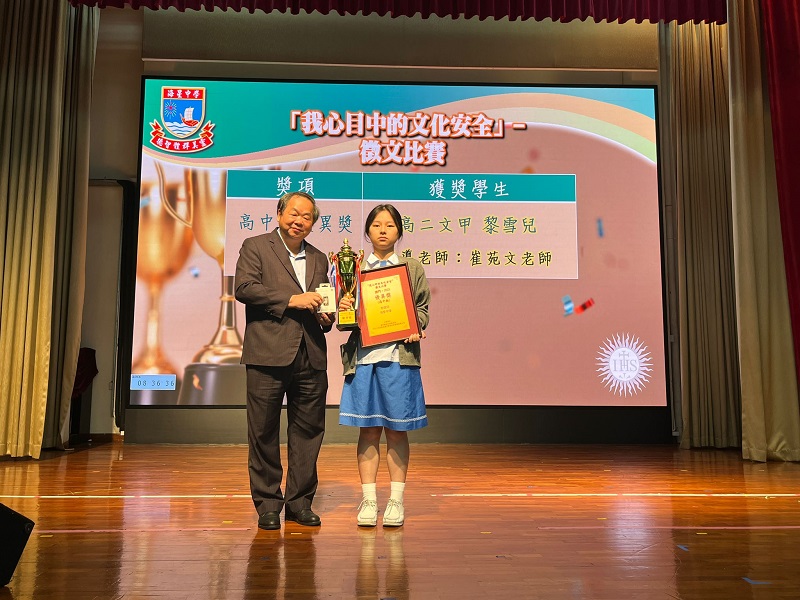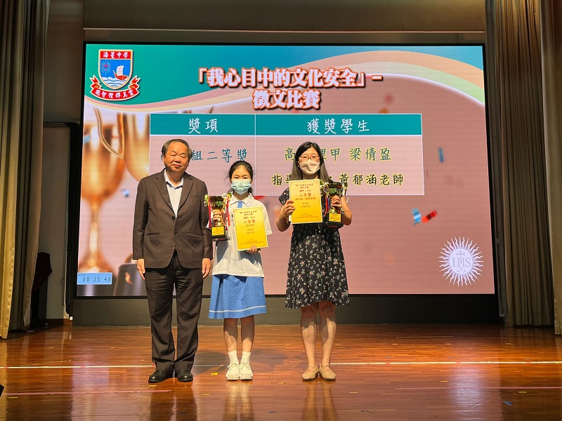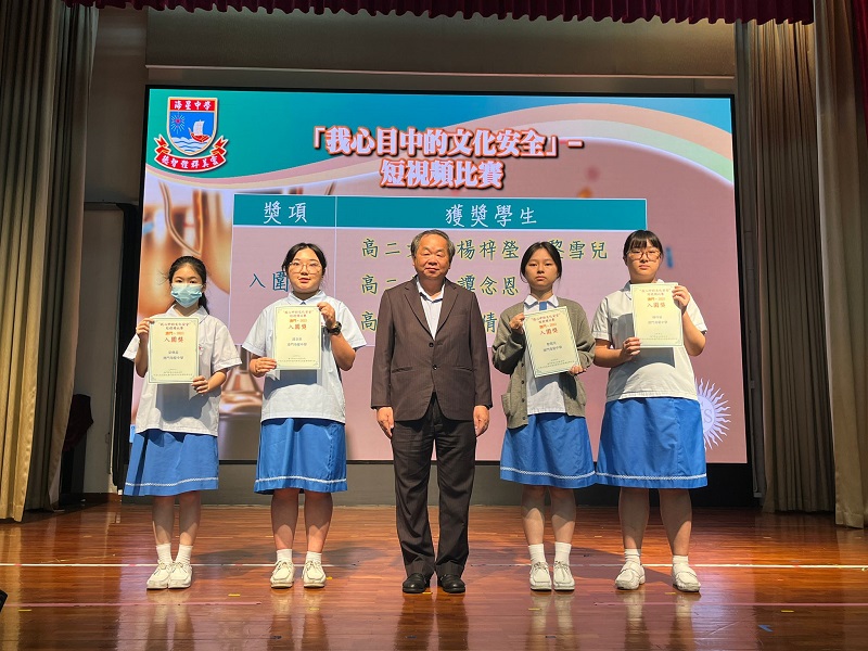 另外,「我心中的文化安全」短視頻比賽的獲獎名單亦已公佈,本校高二文甲楊梓瑩和黎雪兒、高二文乙譚念恩,以及高二理甲梁倩盈獲得入圍獎。同學們通過生動的方式在短視頻中展現對文化安全的認識及理解,同時也展現了他們的無窮創意。