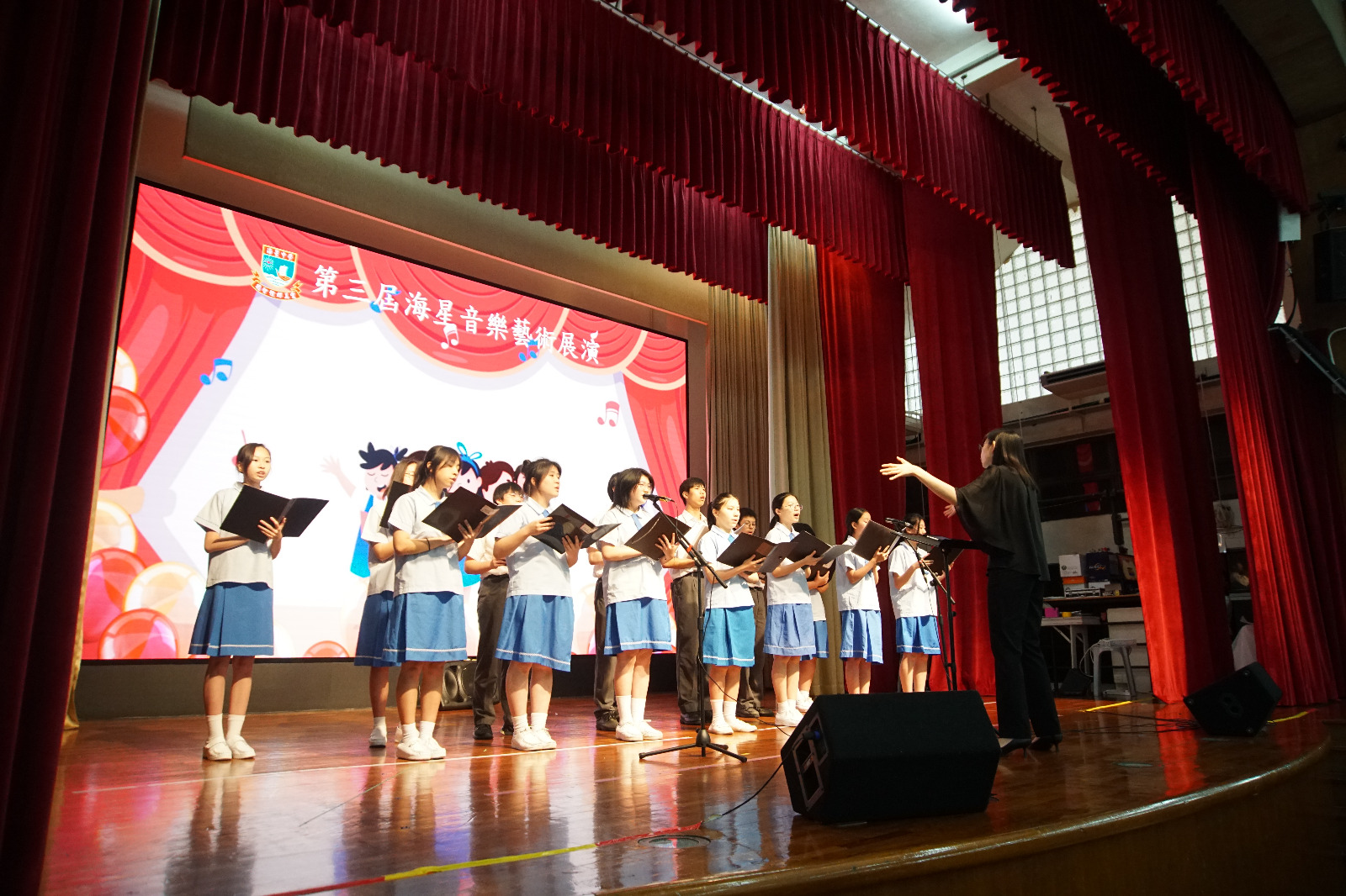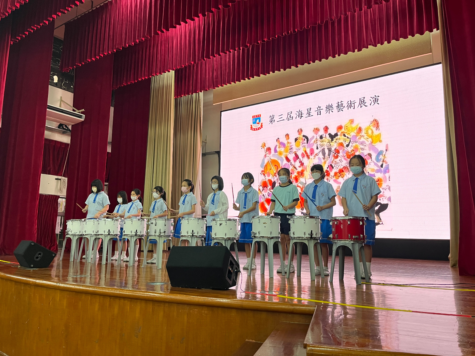 「海星音樂藝術展演」作為本校一年一度的音樂盛事,並獲得教育及青年發展局的支持,透過課程設計及教學手段增加學生不同的音樂學習經驗,並通過獨奏、合唱及合奏等不同方式進行音樂實踐與合作,運用不同的比賽、匯演及評定獎項等評估方式讓學生進行學習反思。