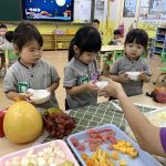 幼稚園還邀請了家長為小朋友預備節慶食物,例如楊桃、菱角、柚子和月餅等回校與同儕一起分享。慶祝會節日氣氛濃厚,小朋友都能體驗節日帶來的快樂。是次活動不但讓小朋友從做中學,還培養小朋友與人分享,使能與他人建立良好關係的品德。