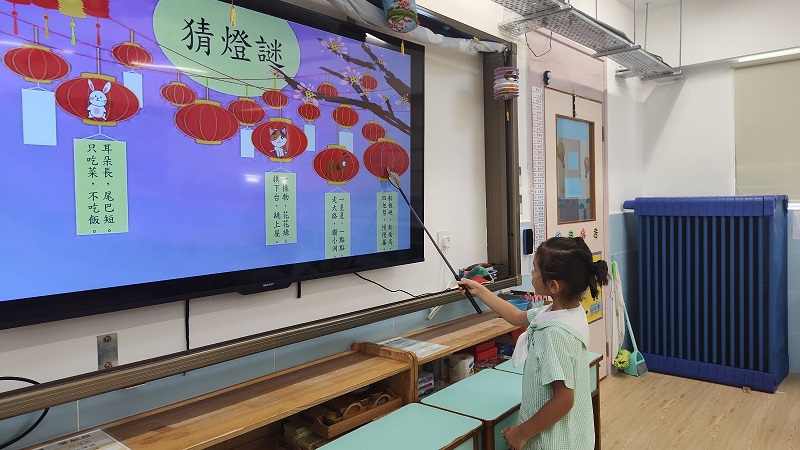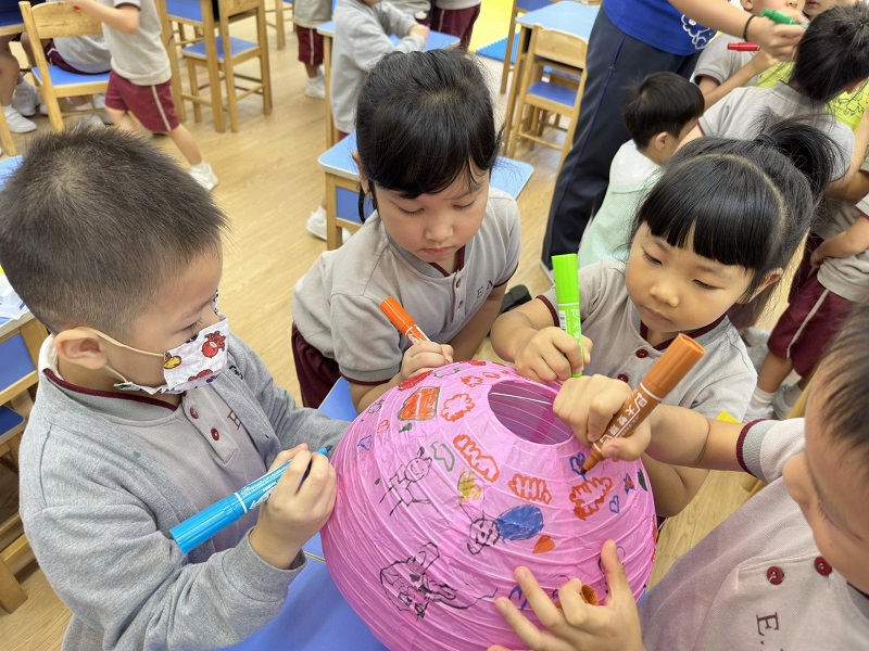 適逢時節,各班老師在課室內精心佈置節日場景,讓小朋友拍照留念,而且老師會因應小朋友的能力,設計了節慶的遊戲和活動,例如:猜燈謎、玩燈籠、欣嘗《嫦娥奔月》的故事影片等。幼高班的小朋友與老師一起製作紙燈籠,並在燈籠上繪畫圖案。幼低班的小朋友利用環保物料,在老師的協助下製作了環保燈籠。而幼兒班則自備燈籠回校與同儕一起玩樂,從中體驗中國傳統文化習俗。