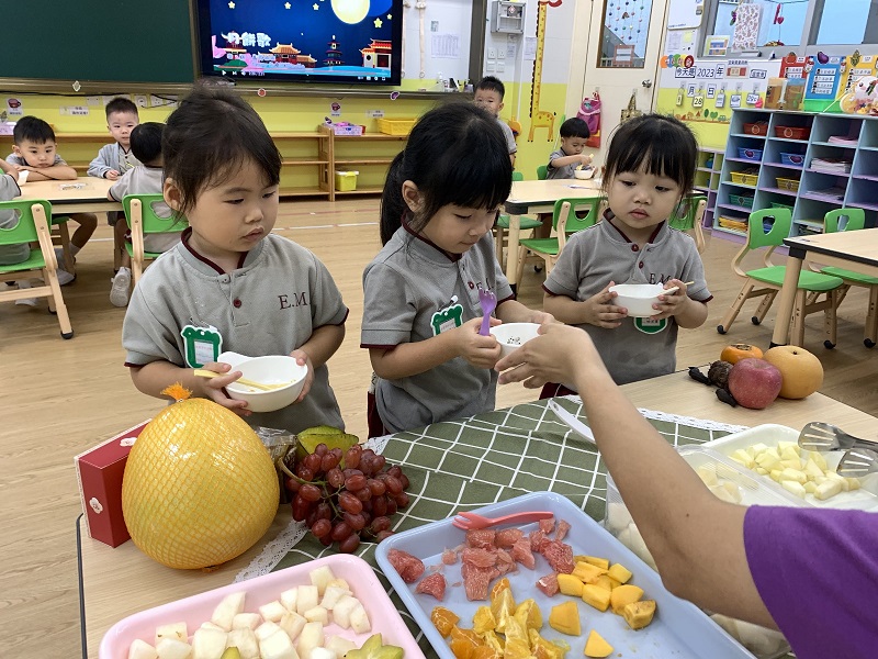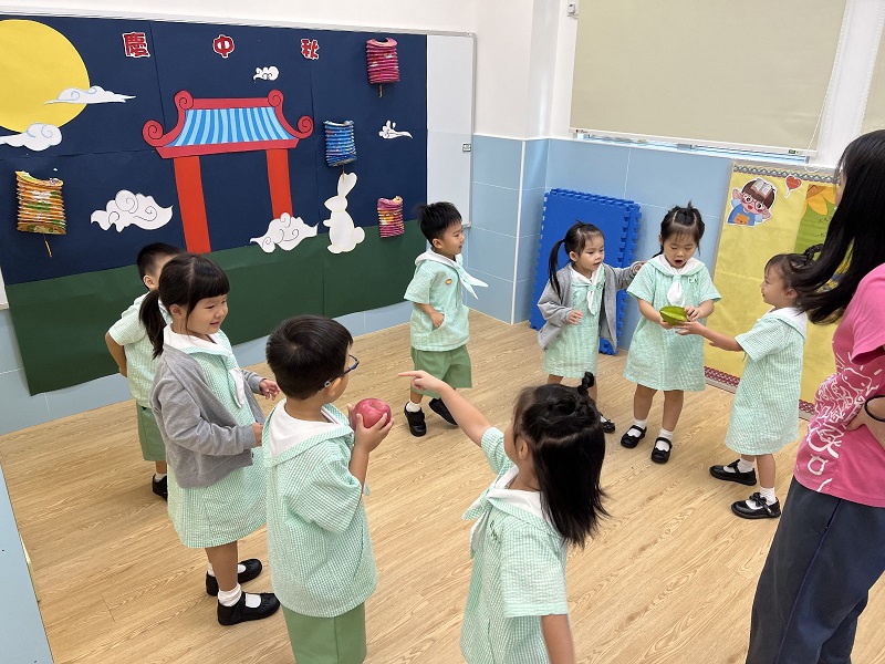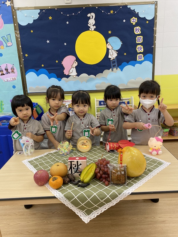 幼稚園還邀請了家長為小朋友預備節慶食物,例如楊桃、菱角、柚子和月餅等回校與同儕一起分享。慶祝會節日氣氛濃厚,小朋友都能體驗節日帶來的快樂。是次活動不但讓小朋友從做中學,還培養小朋友與人分享,使能與他人建立良好關係的品德。