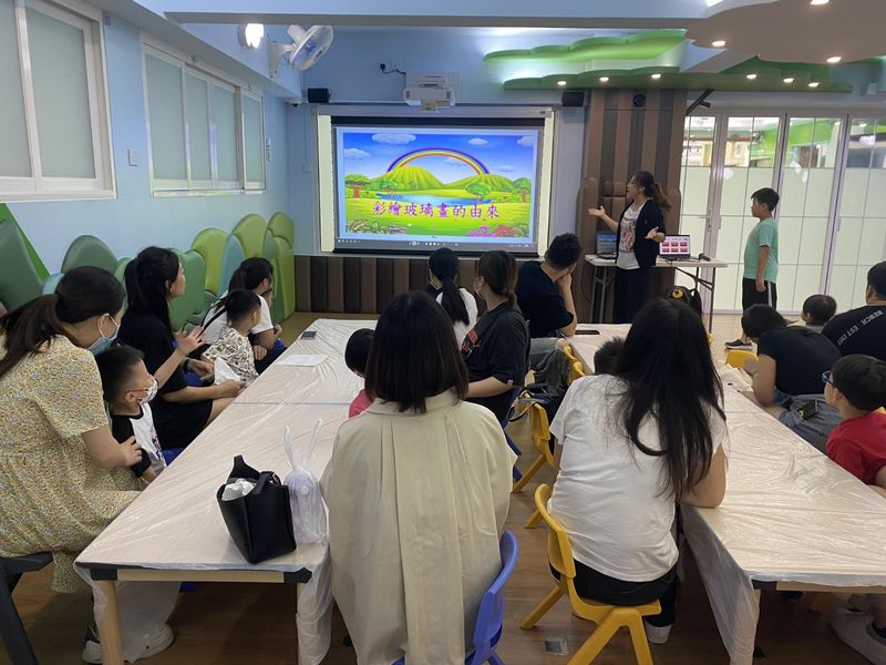 活動開始時,讓小朋友知道玻璃畫的來源和歷史,欣賞玻璃畫應用在教堂建築物及玻璃用品上的美感,導師利用有獎問答環節,加深小朋友對玻璃畫內容的認知;其後開始與家長體驗製作玻璃畫的程序,包括印模、上色、描邊等,過程中需要小朋友耐心地跟着每個步驟,當然遇到困難時,大人會提供協助,好讓小朋友操作兼具備趣味性的同時,提升成就感。