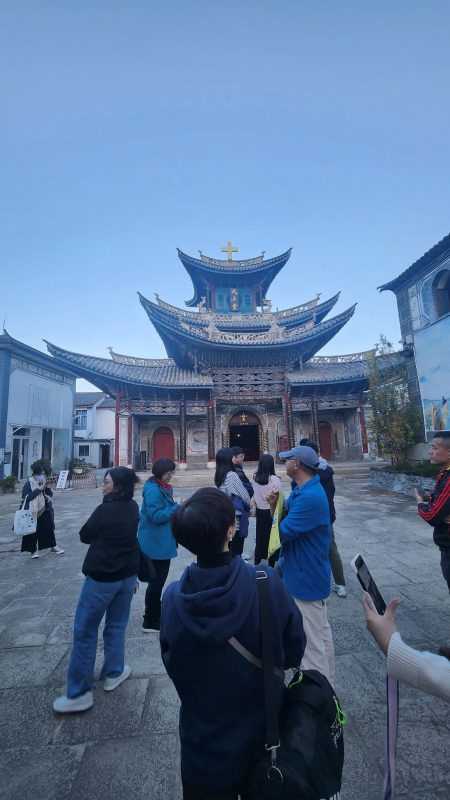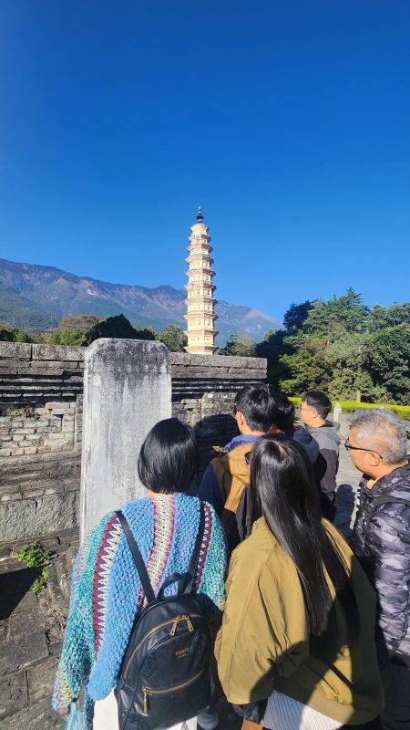 行程首天,教師團隊參觀世界獨一無二的「大理天主教堂」,感受到中西文化融合的宗教文化。傍晚來到了「大理古城」和「洋人街」,在這座留下歲月印記的古城漫步,仿佛置身於唐宋時代的繁華盛世,遊人絡繹不絕。第二天,教師們參觀皇家寺院「崇聖寺三塔」,領略大理古都的文化底蘊。黃昏時分,他們走在仿古色古香的茶馬古道「沙溪古鎮」上,了解白族民族的習俗特色和古鎮不同時期的歷史文化。