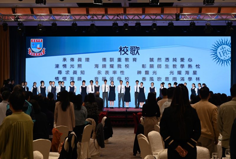 晚宴在國歌、校歌和海星頌的奏響中開始,由學生會的一眾同學代表伴唱,拉開晚宴序幕。耶穌會院長傅南渡神父在致歡迎辭中,勉勵學校繼續努力校成為耶穌會最好的海星中學。
