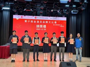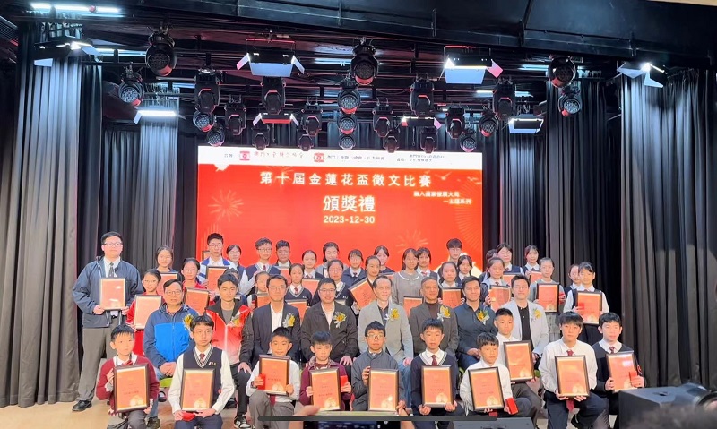 由澳門工會聯合總會及工聯文化委員會主辦,澳門文化發展基金贊助的「第十屆金蓮花盃徵文比賽」,早前在澳門工聯青年中心舉行頒獎典禮。其中本校初二仁班林駿威同學、初三義班陳洛瑤同學榮獲初中組入圍奬。而高二文乙班劉泳筠同學的作品在比賽中脫穎而出,榮獲高中組一等奬,值得嘉許!