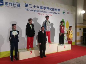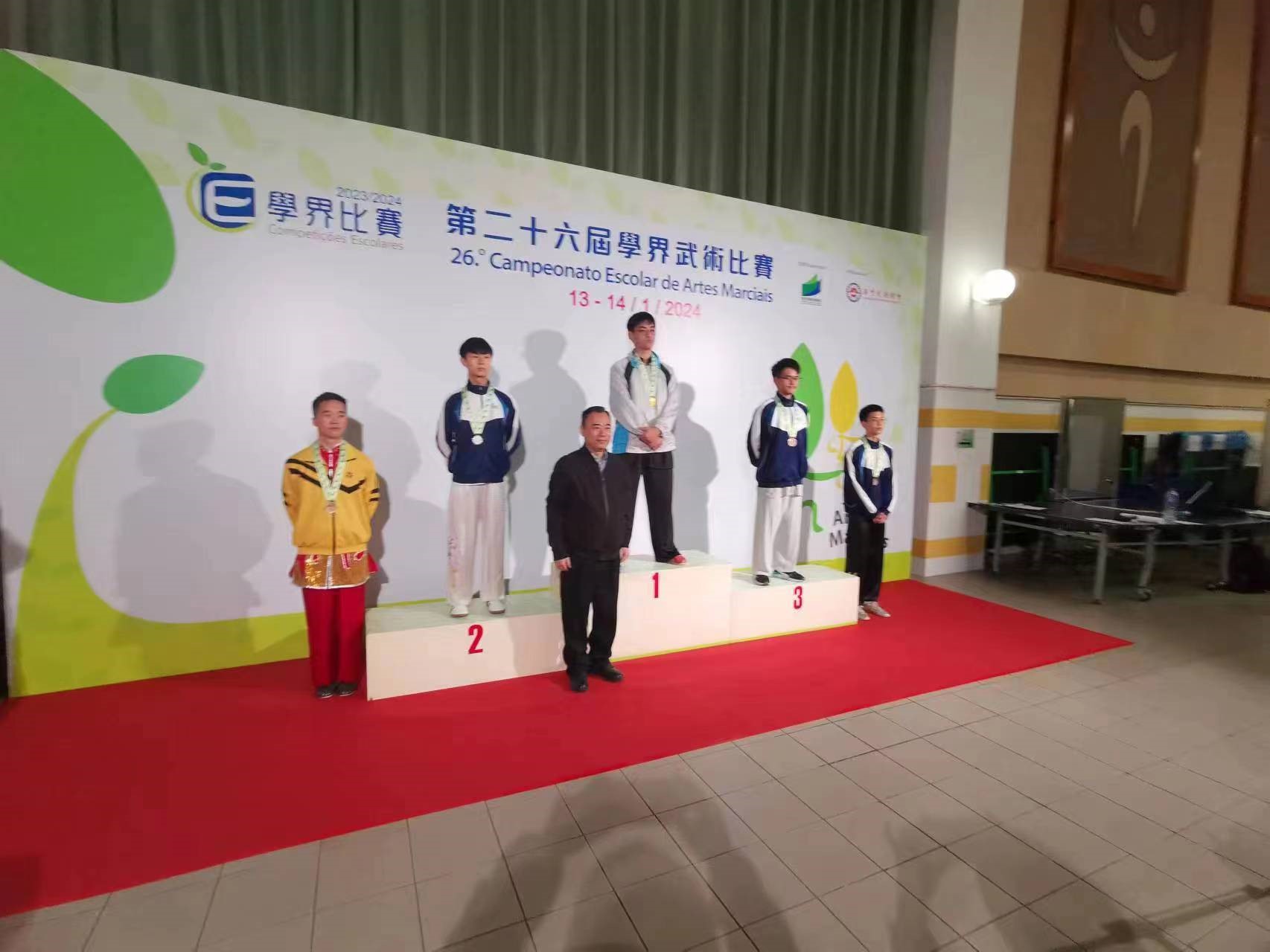 澳門教育及青年發展局主辦的「第二十六屆學界武術比賽」早前在中葡職中體育館順利舉行。本校高一文乙班的段嘉琦同學以出色的表現及穩定的發揮,在比賽中獲得男子A組傳統拳術(長拳類)及傳統短器械(長拳類)的第一名,為學校贏得了優秀的成績,恭喜獲獎同學!