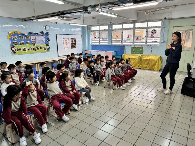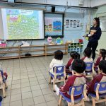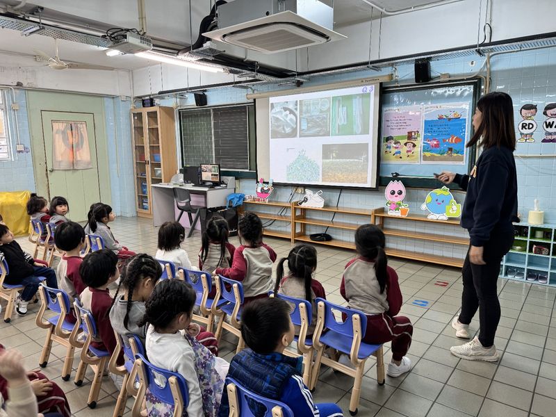日前環境保護局到本校為幼稚園低班小朋友進行有關環保教育活動,向小朋友推廣減廢、愛護環境的理念。