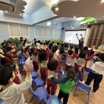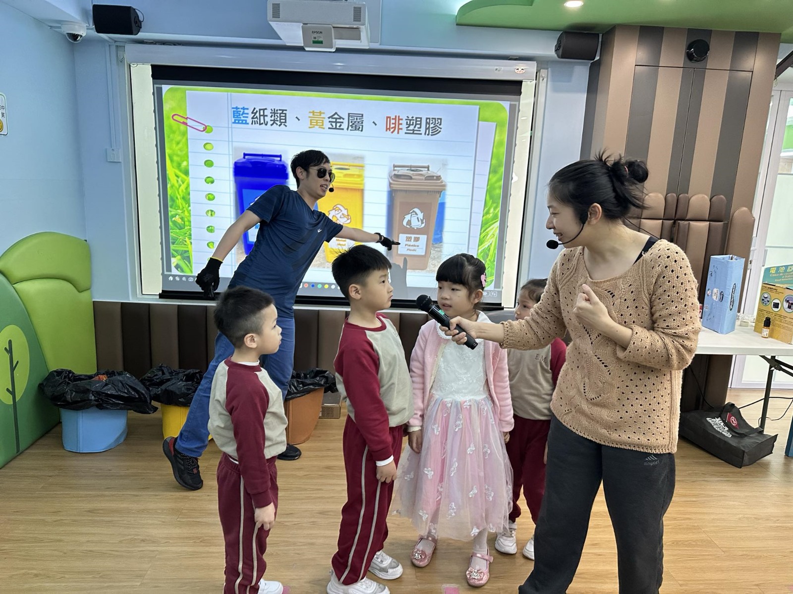 藉此機會,向小朋友介紹了國家對於「環境保護」的施政方向:「國家與澳門積極應對氣候變化,國家主席習近平在第七十五屆聯合國大會上表示:中國將提高國家自主貢獻力度,採取更加有力的政策和措施,將二氧化碳排放量力爭於2030年前達到峰值,努力爭取2060年前實現碳中和,這就是“雙碳目標”」。小朋友從小就對環境保護有初步了解,在內心已種下環保的種子,為我們的家園出一份力。