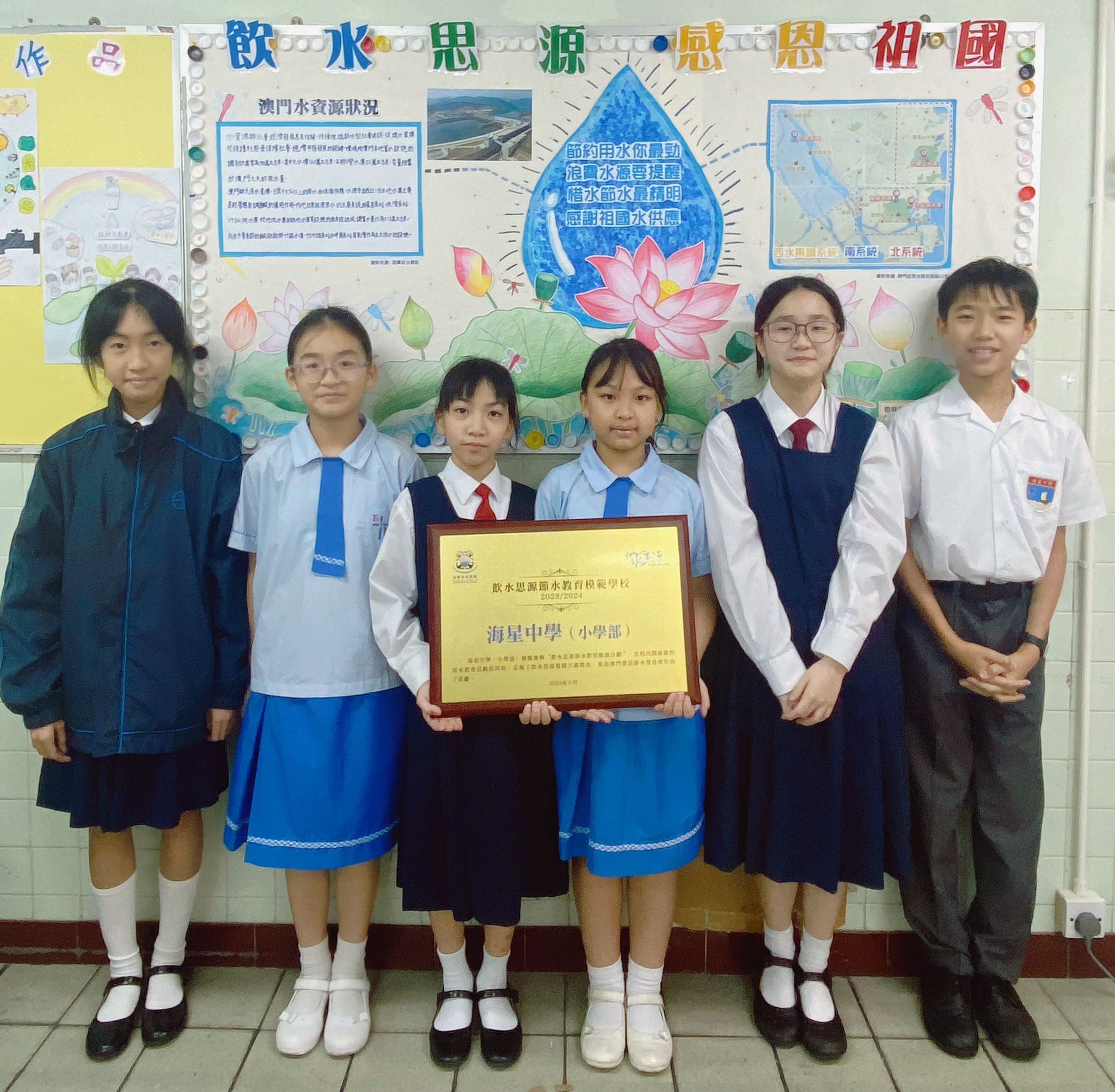 本校小學部科學組於2023年9月至2024年2月期間,由廖志東老師、楊展明老師及楊詠婷老師組織學生蘇浩然、鄧詠芝、陳梓瑤、曾楚兒、鄧桂茵、林梓淇參加了海事及水務局舉辦的「飲水思源節水教育推廣計劃」。此計劃旨在幫助學生從多方面瞭解澳門如何保障供水安全以及水資源的重要性。