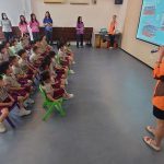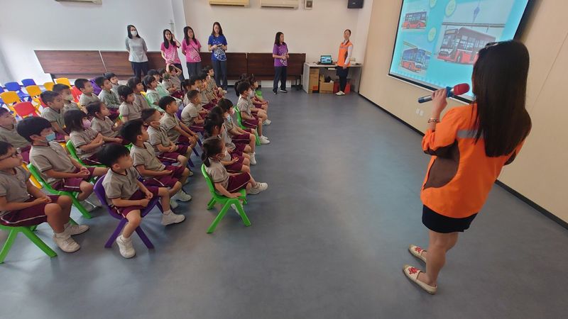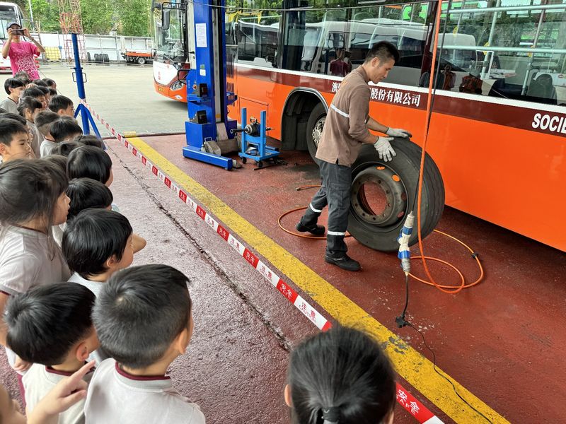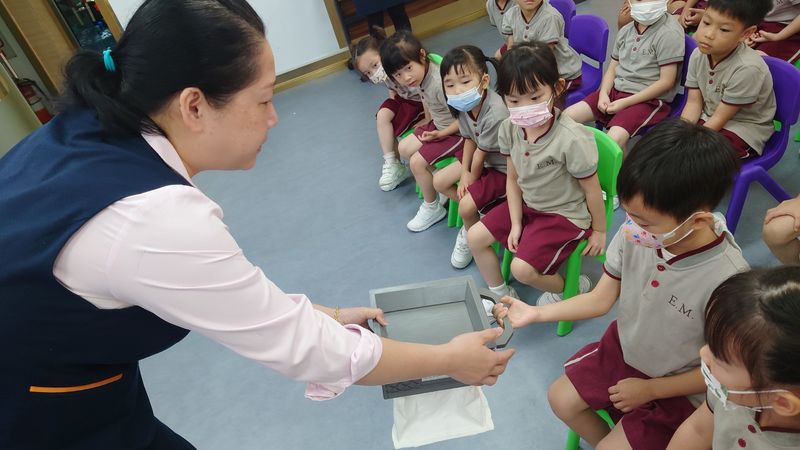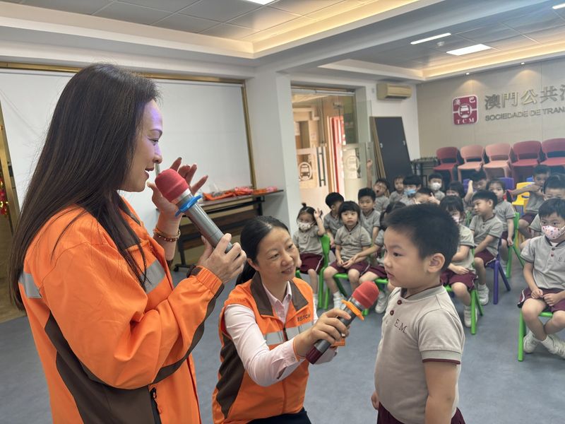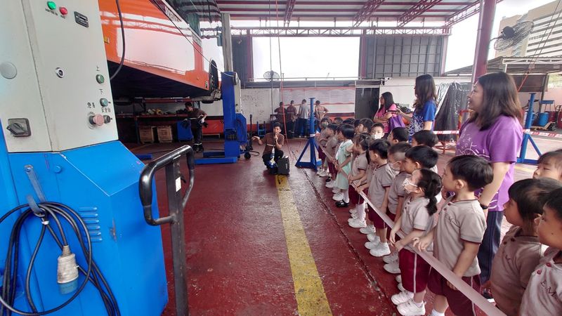 日前,本校幼低班小朋友參觀澳門公共汽車有限公司(澳巴)設在氹仔北安的車廠。首先,工作人員向小朋友講解車廂常見設備、巴士運作流程、乘車禮儀及把座位讓給有需要人士等知識。接着,再向小朋友展示快速計算錢幣數量的機器,由於他們每天需點算約五百個錢箱的錢幣,故需使用這個機器提高工作效率,讓師生大開眼界。除此之外,還帶領小朋友前往觀看維修人員拆除輪胎進行檢查的過程,並告訴他們巴士的輪胎是有6個而不是4個,使巴士更穩固地在路上行駛,確保乘客安全。