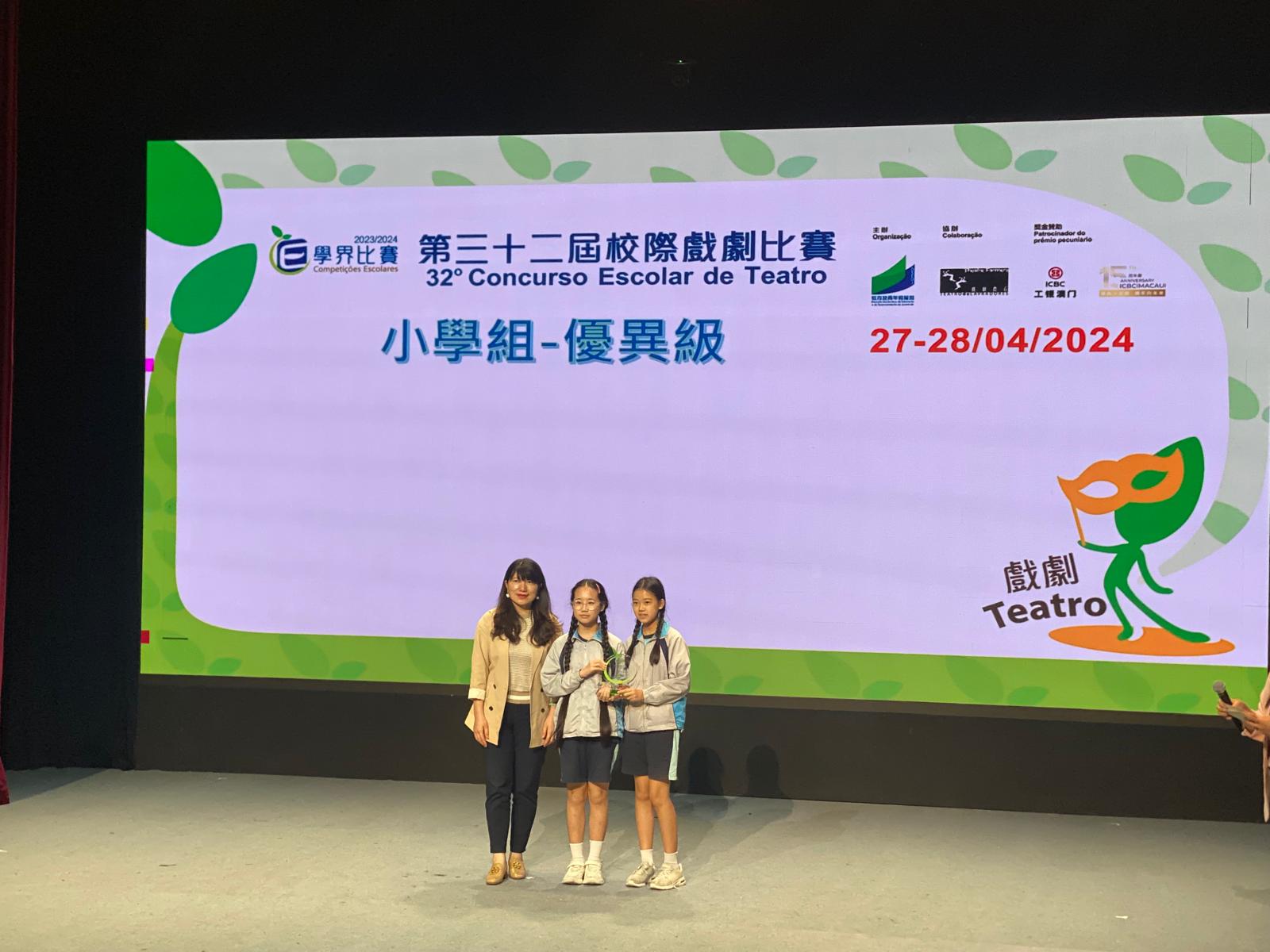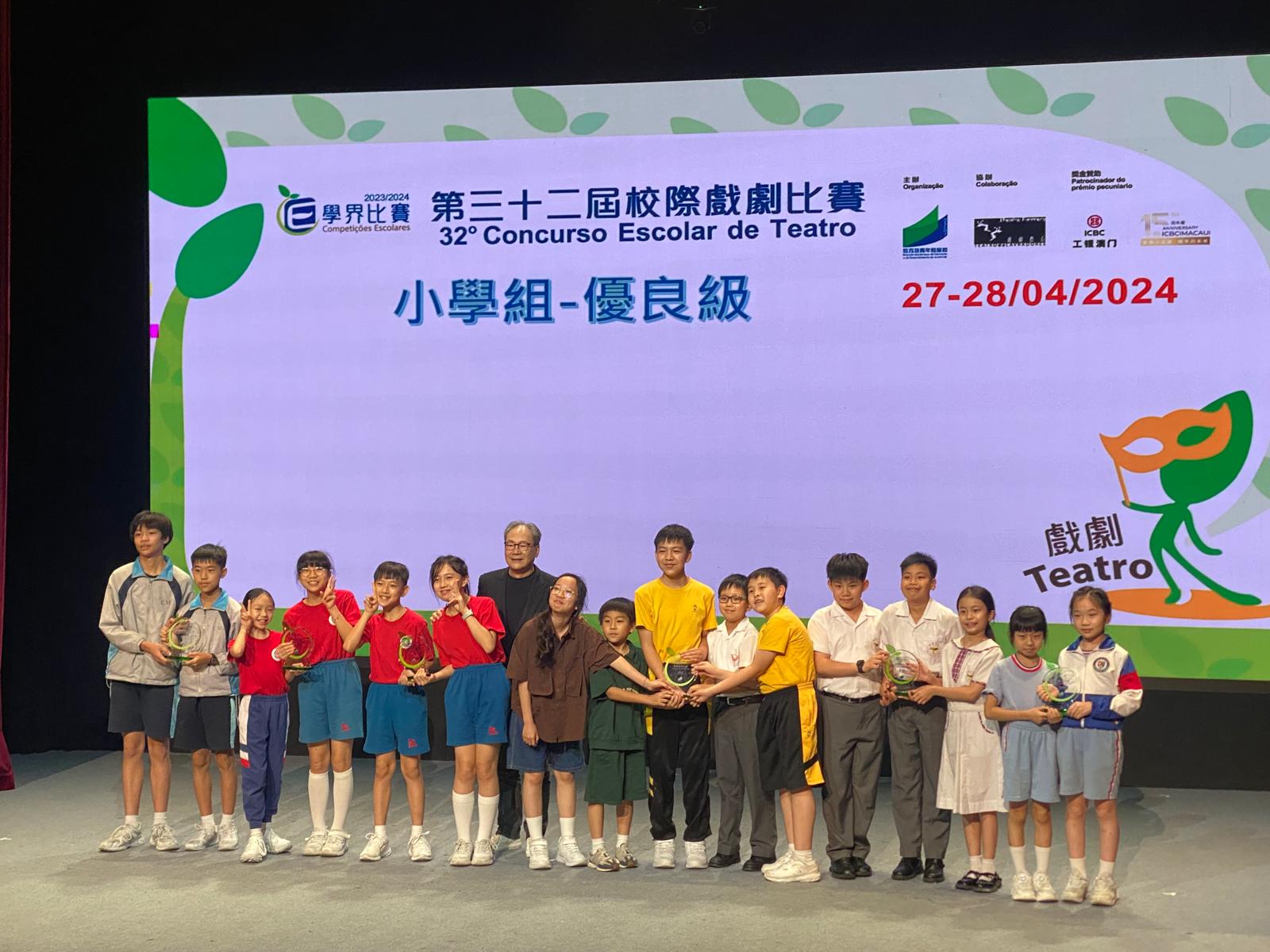 為豐富學生的課餘活動,培養學生對戲劇藝術的興趣,本校小學戲劇組於2024年4月27日參加由教育及青年發展局主辦、戲劇農莊協辦、中國工商銀行(澳門)股份有限公司獎金贊助的「2023/2024學年第三十二屆校際戲劇比賽」。