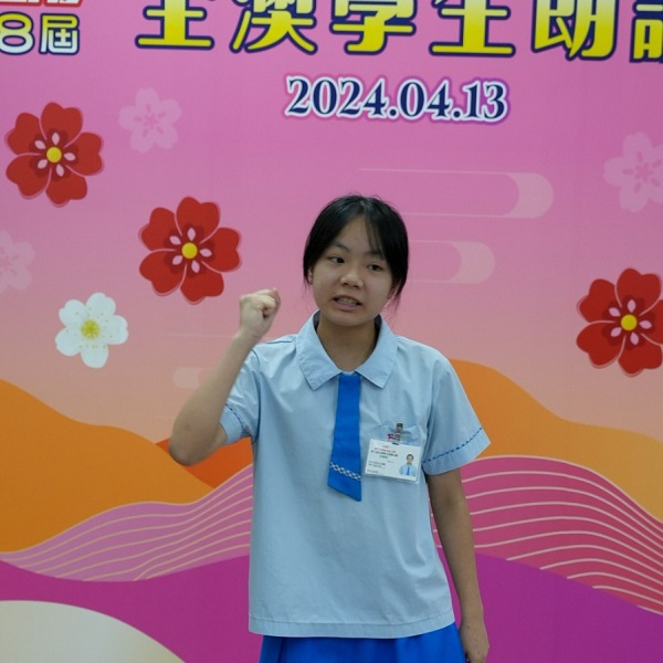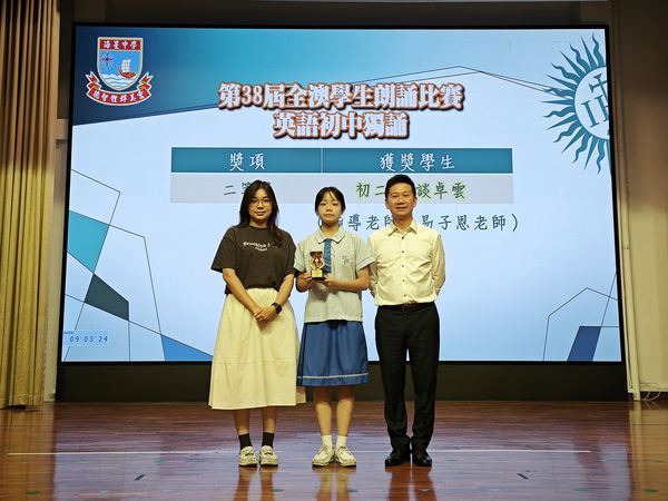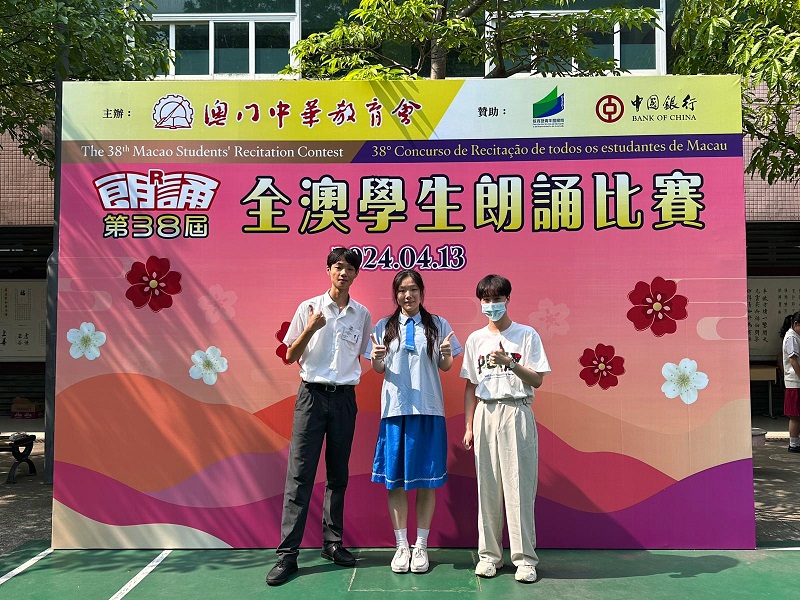 本校於上週頒發第38屆全澳學生朗誦比賽獎項,肯定了獲獎同學的努力以及指導老師的悉心教導與陪伴,其中同學們在英語獨誦部份中獲得不俗成績,表現出色,期望來年能再接再厲,繼續力爭佳績。