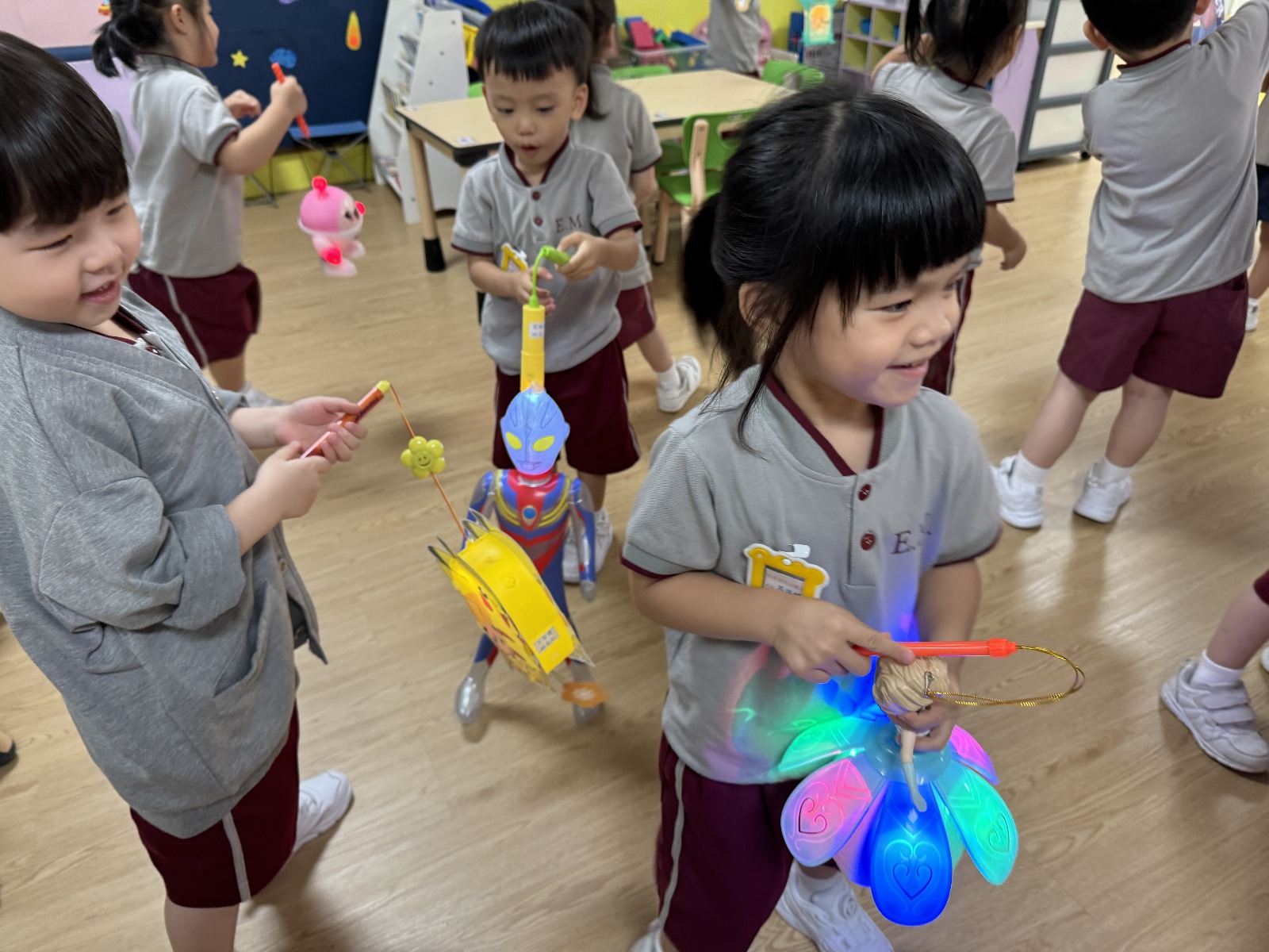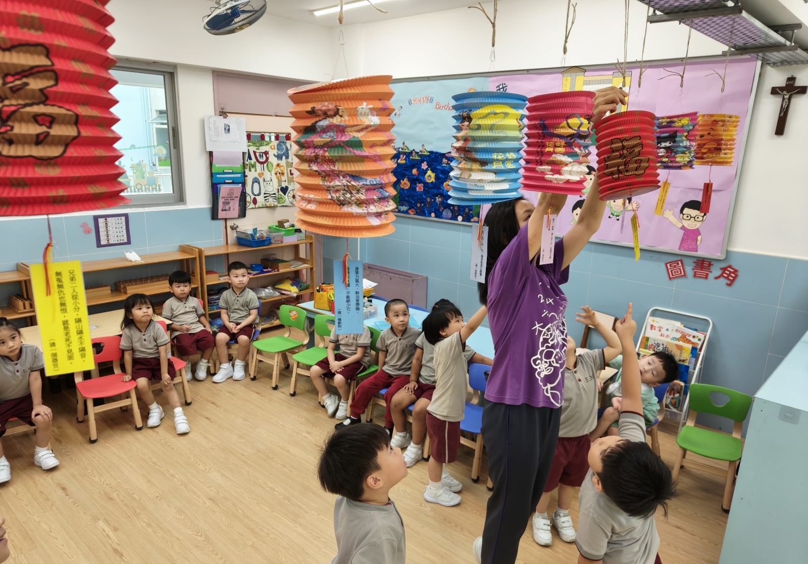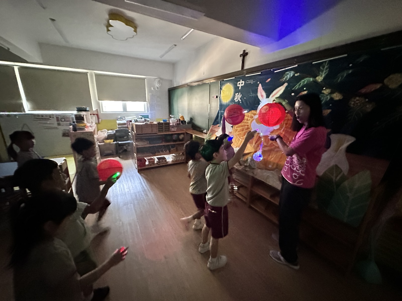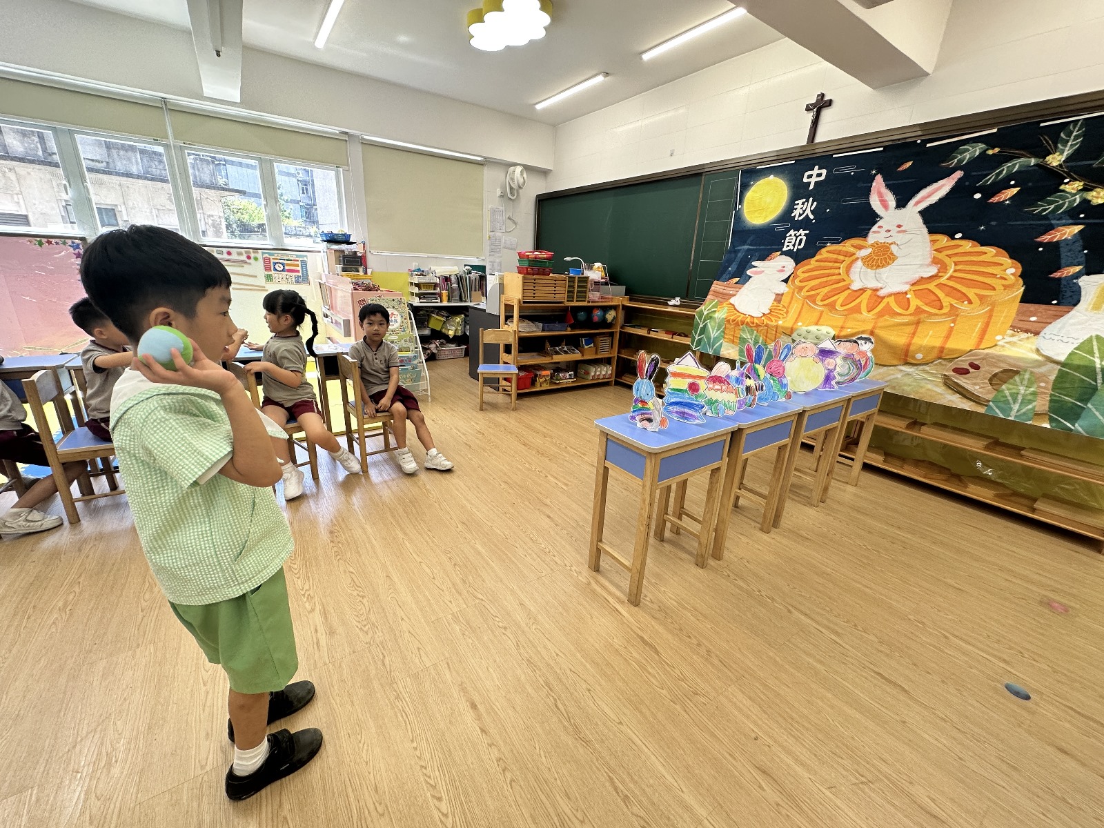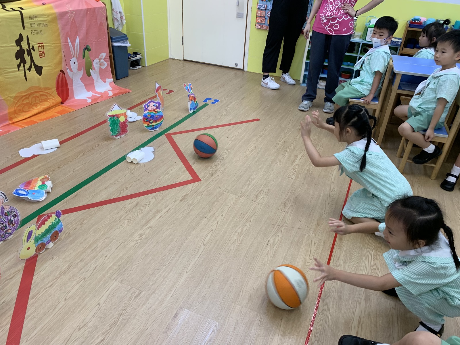 本次慶祝會的亮點之一是燈籠遊戲,各級的幼兒都積極參與。K1的幼兒帶來了自己喜歡的燈籠,一起在課室內玩耍,享受著玩燈籠的快樂時光。K2的幼兒玩自己親手製作的燈籠,並在老師的帶領下進行猜燈謎和摘月亮遊戲,這些活動提升了他們的動手能力,從遊戲中學會團體合作與互相分享。此外,K3的幼兒也展現了創意和想像力,他們把各種中秋節物品圖案填上顏色,並利用這些七彩繽紛的作品作為道具,進行中秋保齡球遊戲,這個遊戲大大增加了活動的趣味性,還讓他們在輕鬆的環境中學習中秋節的相關知識,老師也特意準備了美麗的燈籠讓他們玩樂。