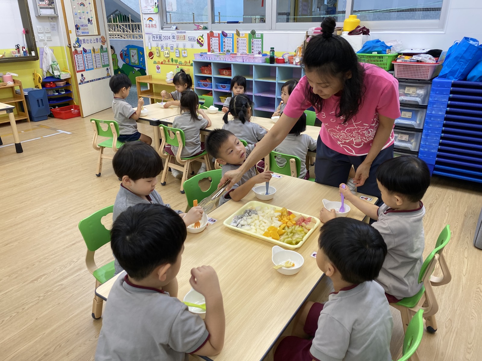 在分享食物的環節中,各班幼兒都帶來了各種應節的中秋食品,讓整個慶祝會更加圓滿,老師不僅介紹這些美食的由來和意義,還讓幼兒在品嚐美食的同時,更能了解中秋節的文化與傳統,也讓他們在互動中感受到中秋團圓的意義。