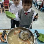 本校著重小朋友透過活動中學習,所以配合單元學習目標「珍惜食物」及「保護環境」,安排小朋友進行吃火鍋活動過程中,他們會互相分享自己帶回來及購買的食材,同時與老師在課堂上教導的知識作連結,豐富其學習經驗。