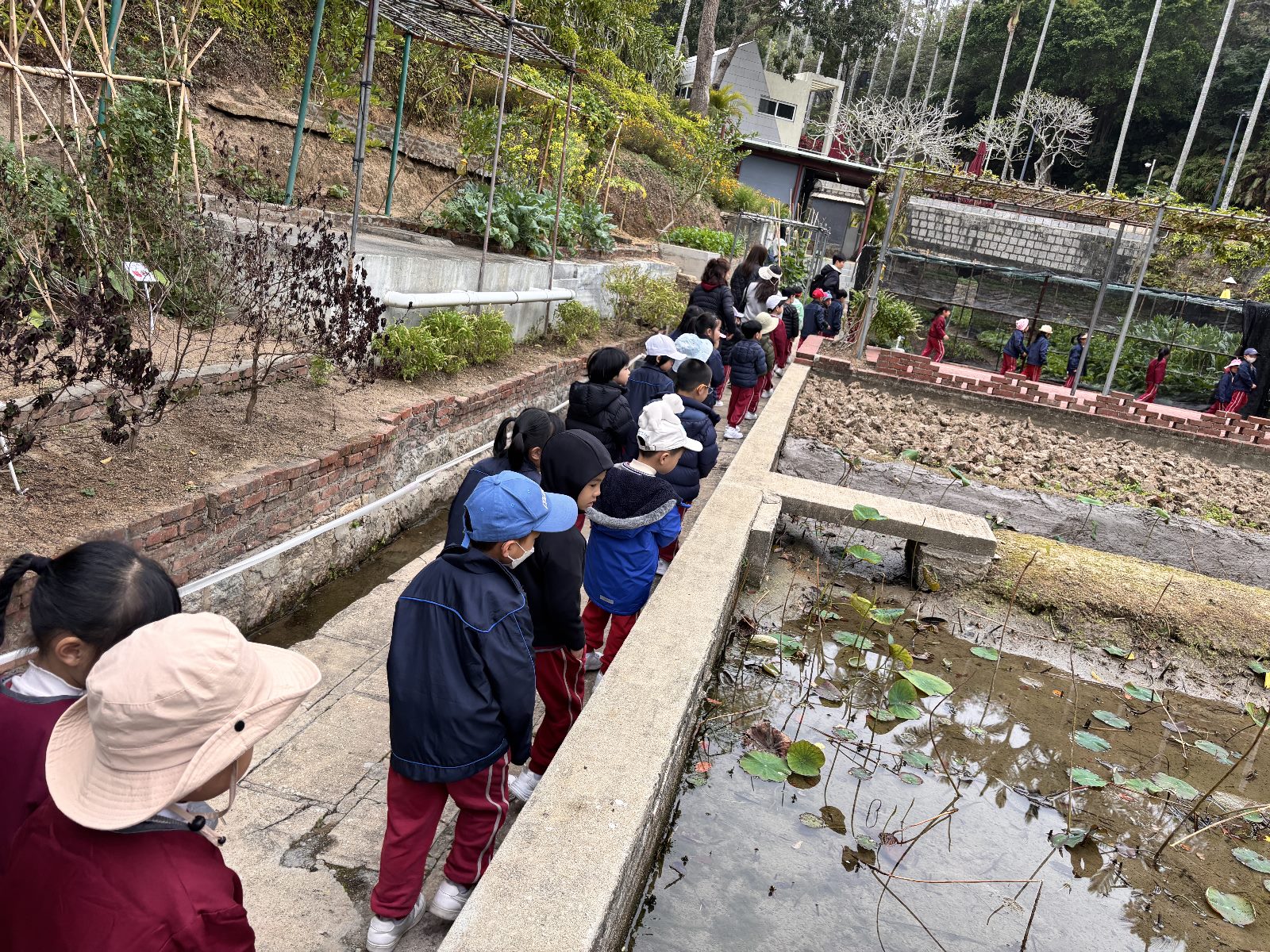 本次活動由農場的專業人員帶領,首先對農場環境進行了簡單介紹,接著參觀了多個區域,包括牲畜農舍、種植田地及不同種類蔬果的展示區。孩子們仔細聆聽農場講解,對各種蔬菜和水果的名字與種植過程充滿了好奇心。導師們介紹了有百年樹齡的荔枝樹,附在欄杆生長的火龍果以及想見的其他果樹如木瓜和香蕉,沿途活捉螳螂讓幼兒們近距離觀察昆蟲的特徵等,激發了孩子們對動植物的探索興趣。