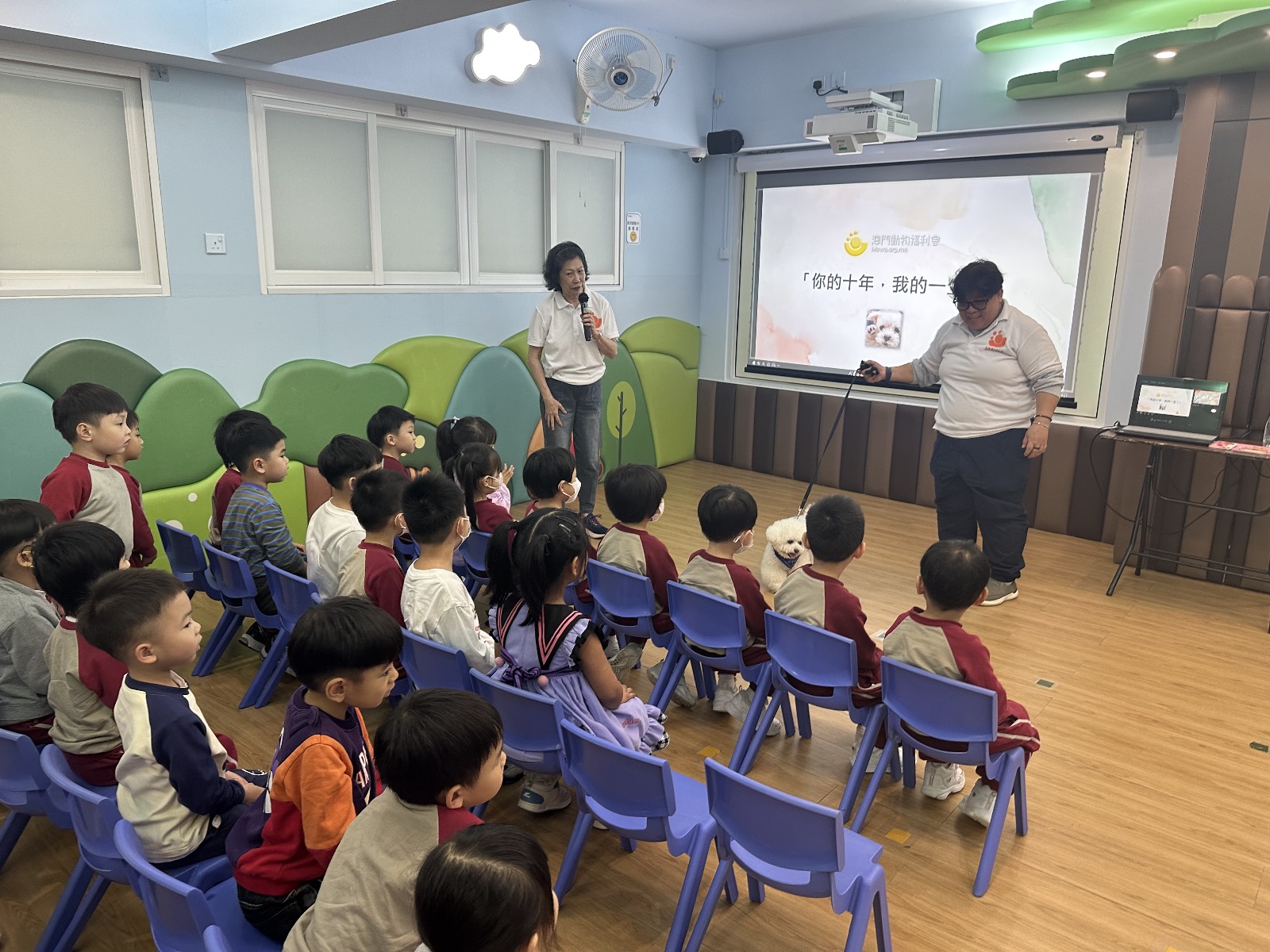 為豐富學生學習生命教育的知識,日前本校誠邀「澳門動物福利會」屬下的狗醫生團隊入校舉行「親親狗醫生」活動,讓幼低班小朋友參與,旨在讓學生們透過與狗狗的互動,學習尊重生命、關愛動物,並培養幼兒的同理心與責任感。