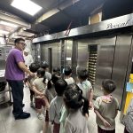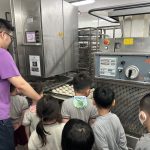 參觀過程中,馬先生向小朋友介紹工廠的歷史和特色產品,再帶領他們參觀了麵粉攪拌機、烘焙爐和包裝機等設備,並詳細解釋每一個機器的功能與用途。小朋友對各種設備充滿好奇及積極發問,展現出對產品製作過程的濃厚興趣。從觀察麵包和糕點由原材料到成品的每一個步驟,感受到食品製作的樂趣。