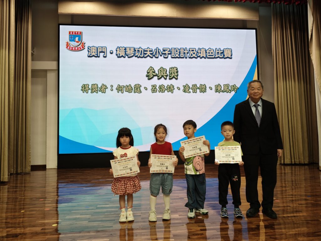 由承曦國際文化發展有限公司聯同澳門 Q 版漫畫藝術家 Q 太廊合辦的「功夫小子設計及填色比賽(大灣區)」,以「功夫小子」為主題,旨在激發兒童的創造力與想像力。本校幼稚園學生於比賽中表現出色,獲獎名單如下: