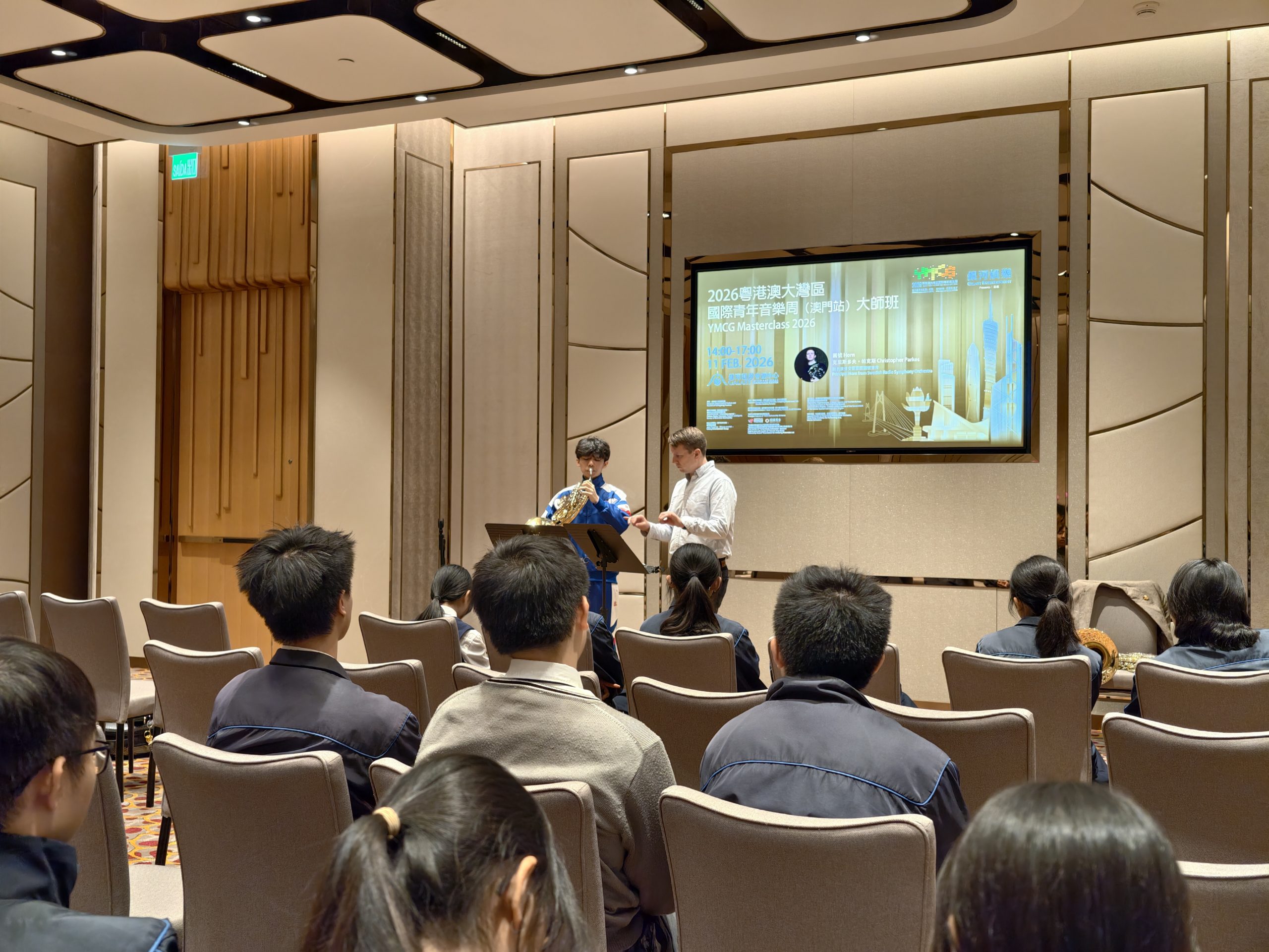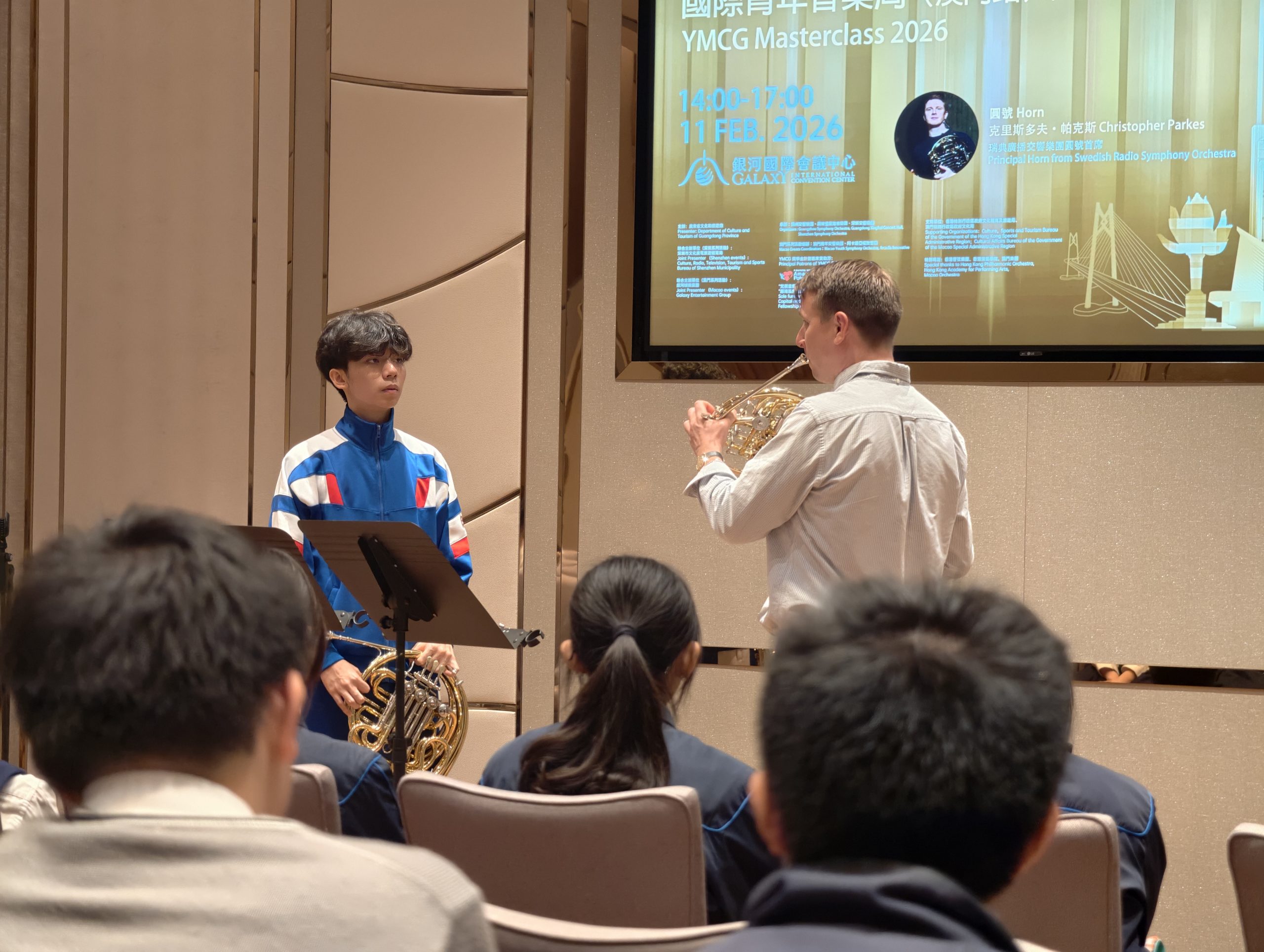海星中學管樂團近日獲邀參與2026年「粵港澳大灣區國際青年音樂周(YMCG)」,並派出由導師及資深團員組成的42人代表團,於2月11日親臨澳門銀河國際會議中心,參加音樂周舉辦之大師班,與世界級音樂名家近距離交流學習。