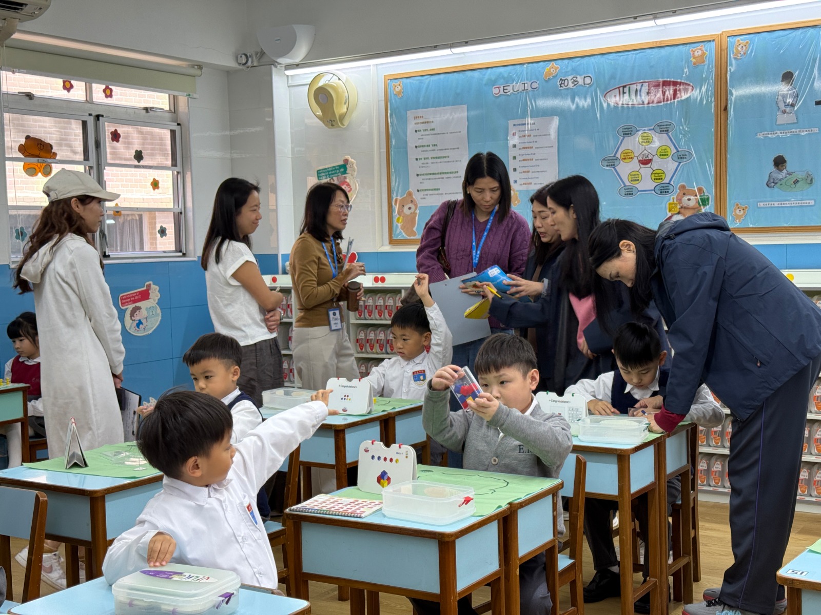 分享環節結束後,來訪嘉賓分組進入班級開展入班觀課,沉浸式觀摩本校蒙特梭利課程、JELIC課程、幼兒小籃球、電子百拼積木等特色課堂,近距離感受多元教學模式下的幼兒學習狀態與課堂氛圍。