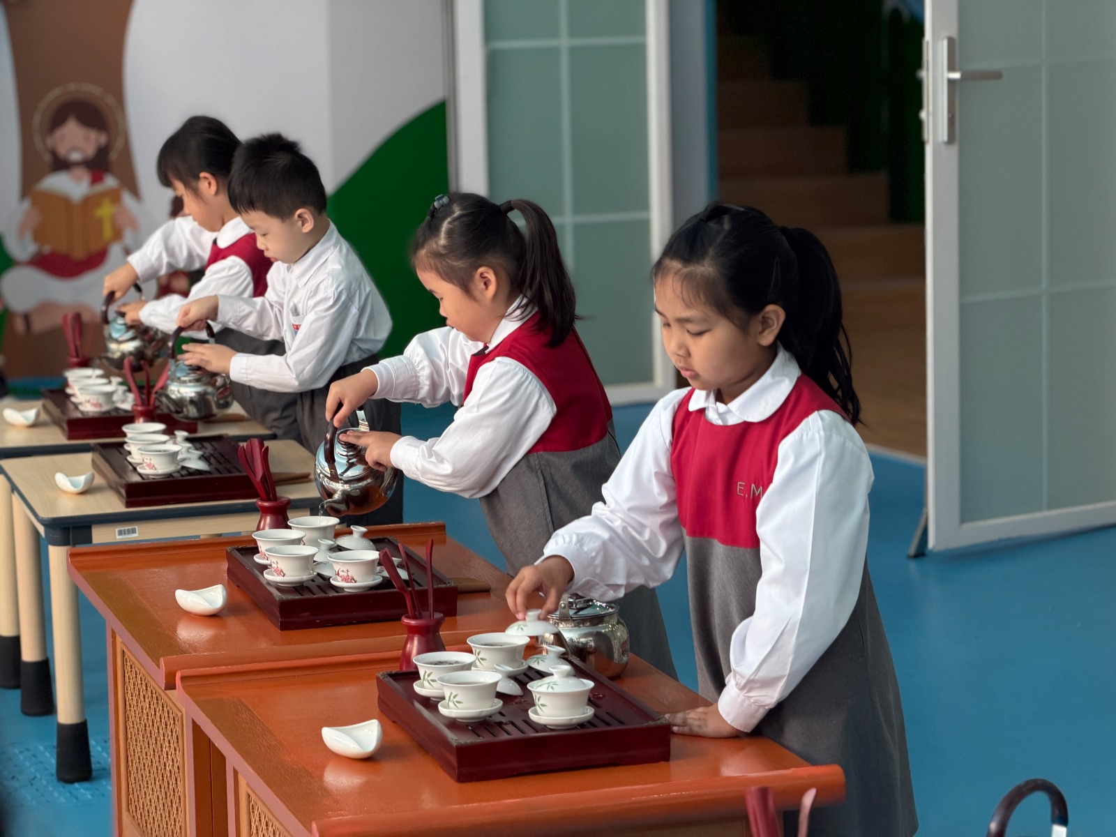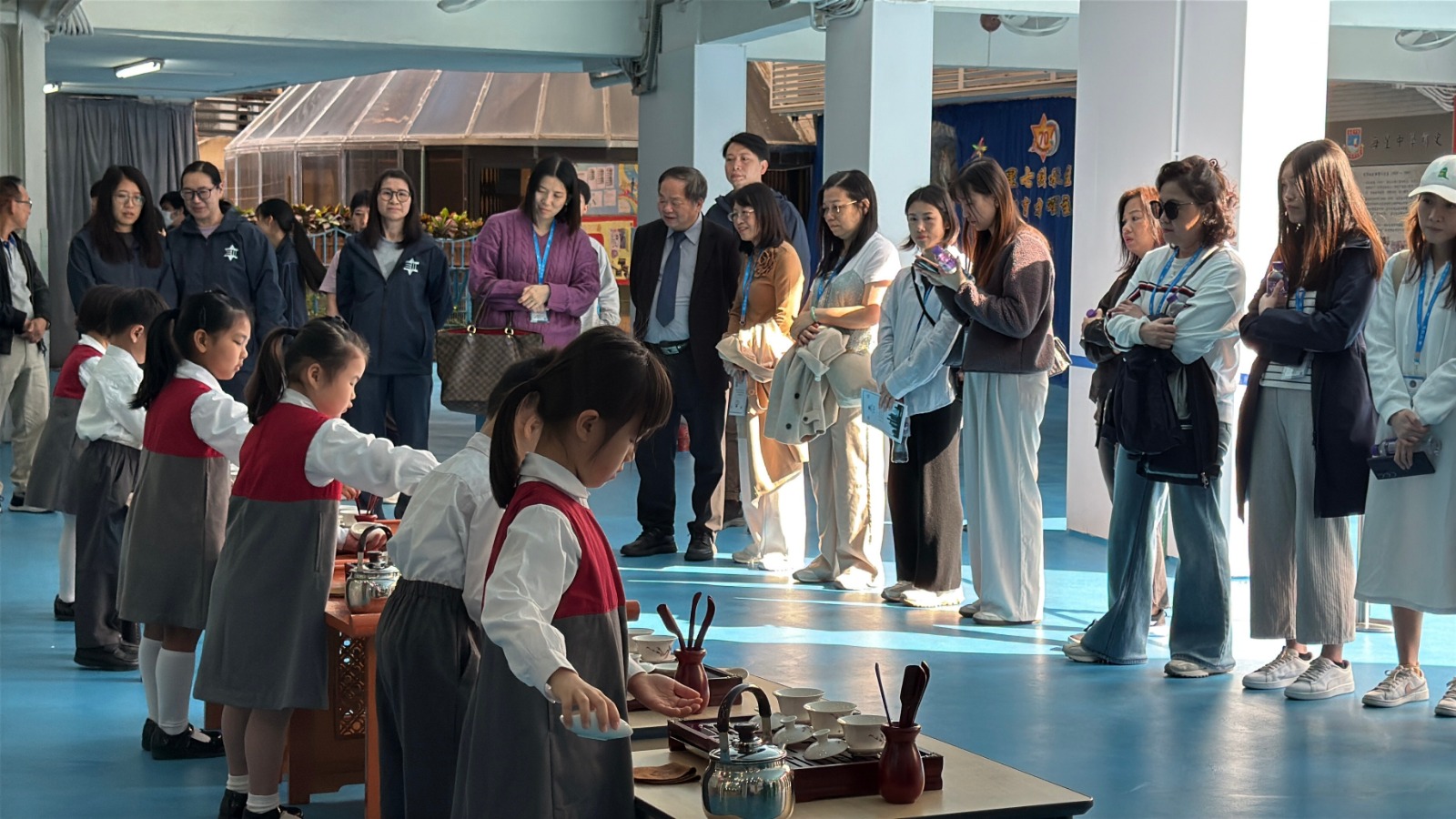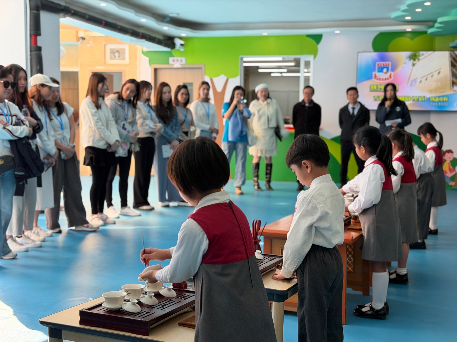 活動伊始,本校幼稚園高班學子以獨具特色的功夫茶禮熱情迎接遠道而來的賓客,以茶為禮、以禮傳情,生動詮釋“有朋自遠方來,不亦樂乎”的待客之道,盡顯本校學子的文雅素養與童真風采。